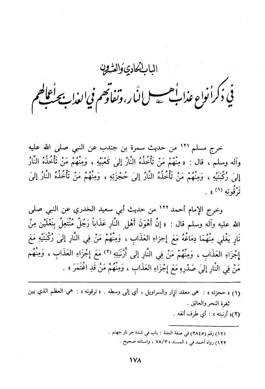 الباب الحادي والعشرون في ذكر أنواع عذاب أهل النار فيها وتفاوتهم في العذاب بحسب أعمالهم