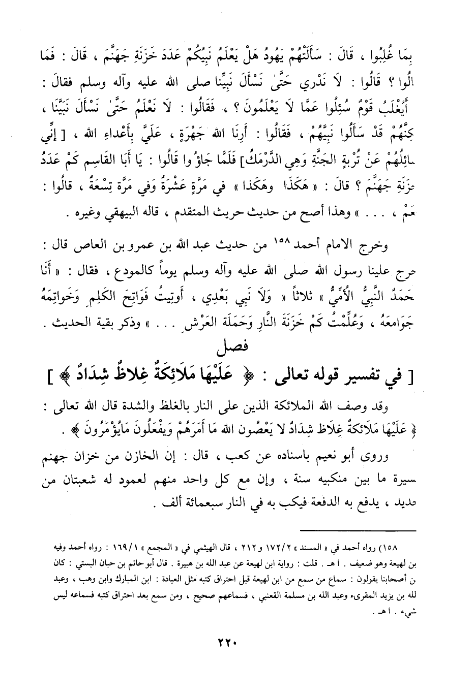 وخرج الإمام أحمد، «من حديث عبد الله بن العاص، قال: خرج علينا رسول الله صلى الله عليه وآله وسلم يوماً كالمودع، فقال: أنا محمد النبي الأمي ثلاثاً ولا نبي بعدي، أوتيت فواتح الكلم وخواتمه وجوامعه، وعلمت كم خزنة النار وحملة العرش» وذكر بقية الحديث.