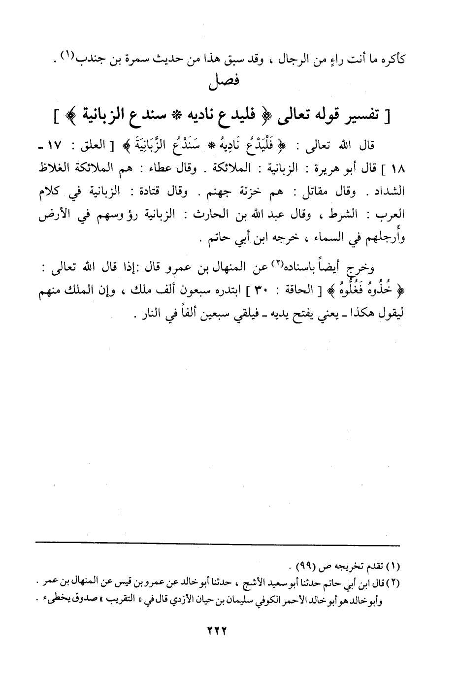 فصل ـ تفسير قوله تعالى " فليدع ناديه. سندع الزبانية "