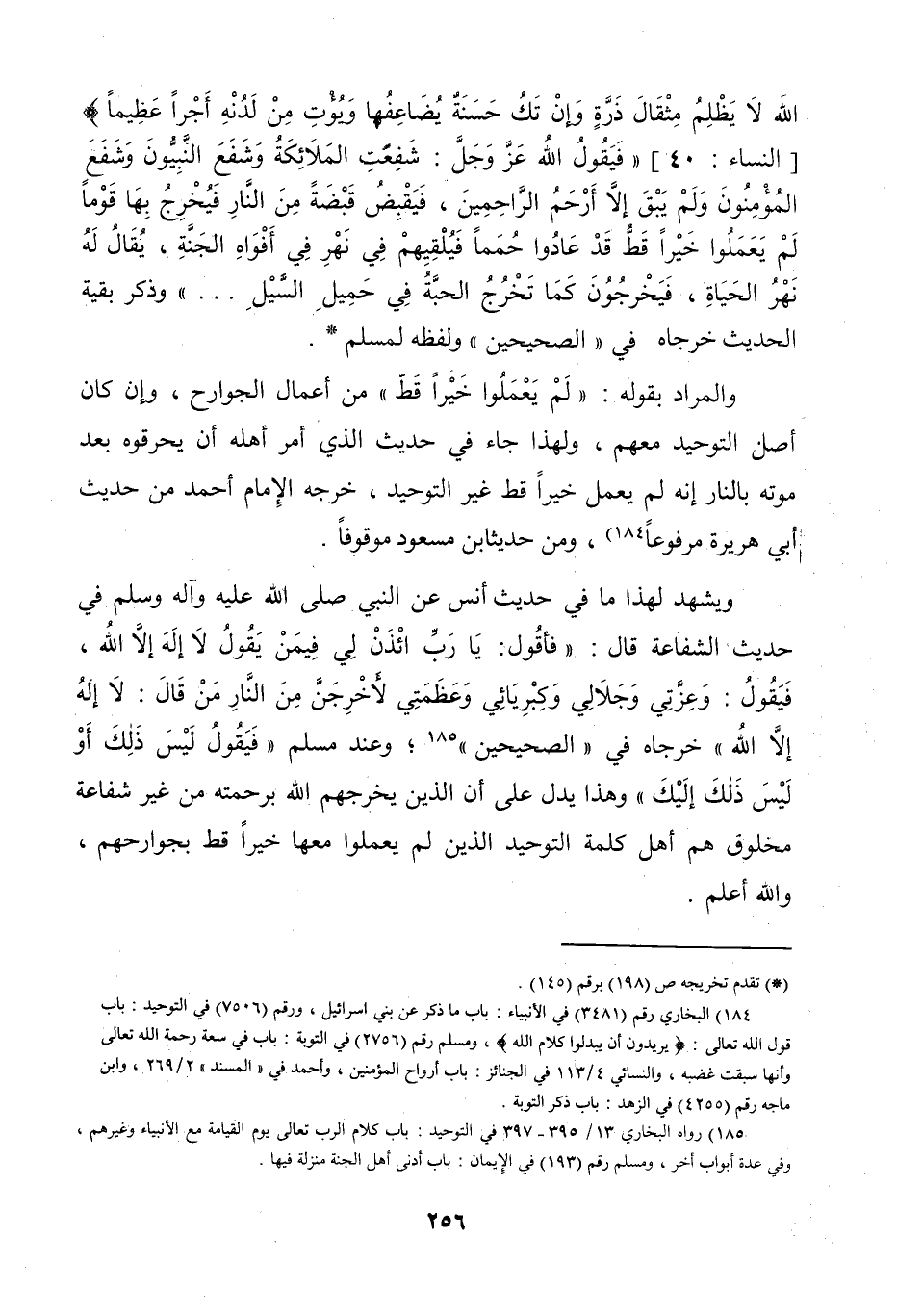 وهذا يدل على أن الذين يخرجهم الله برحمته، من غير شفاعة مخلوق، هم أهل كلمة التوحيد، الذين لم يعملوا معها خيراً قط بجوارحهم، والله أعلم.