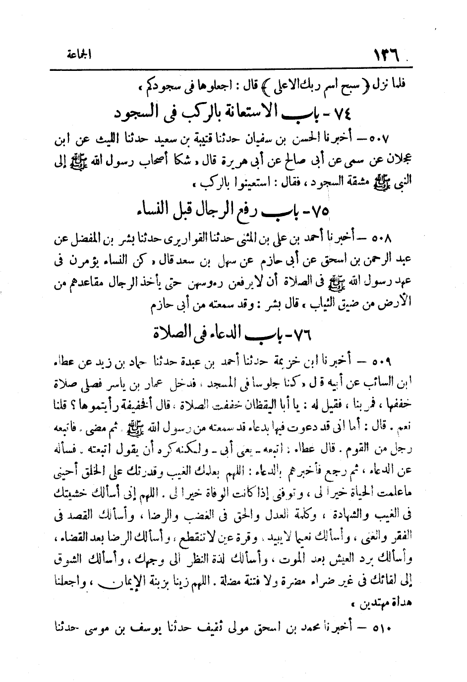76- بَاب الدُّعَاء فِي الصَّلَاة