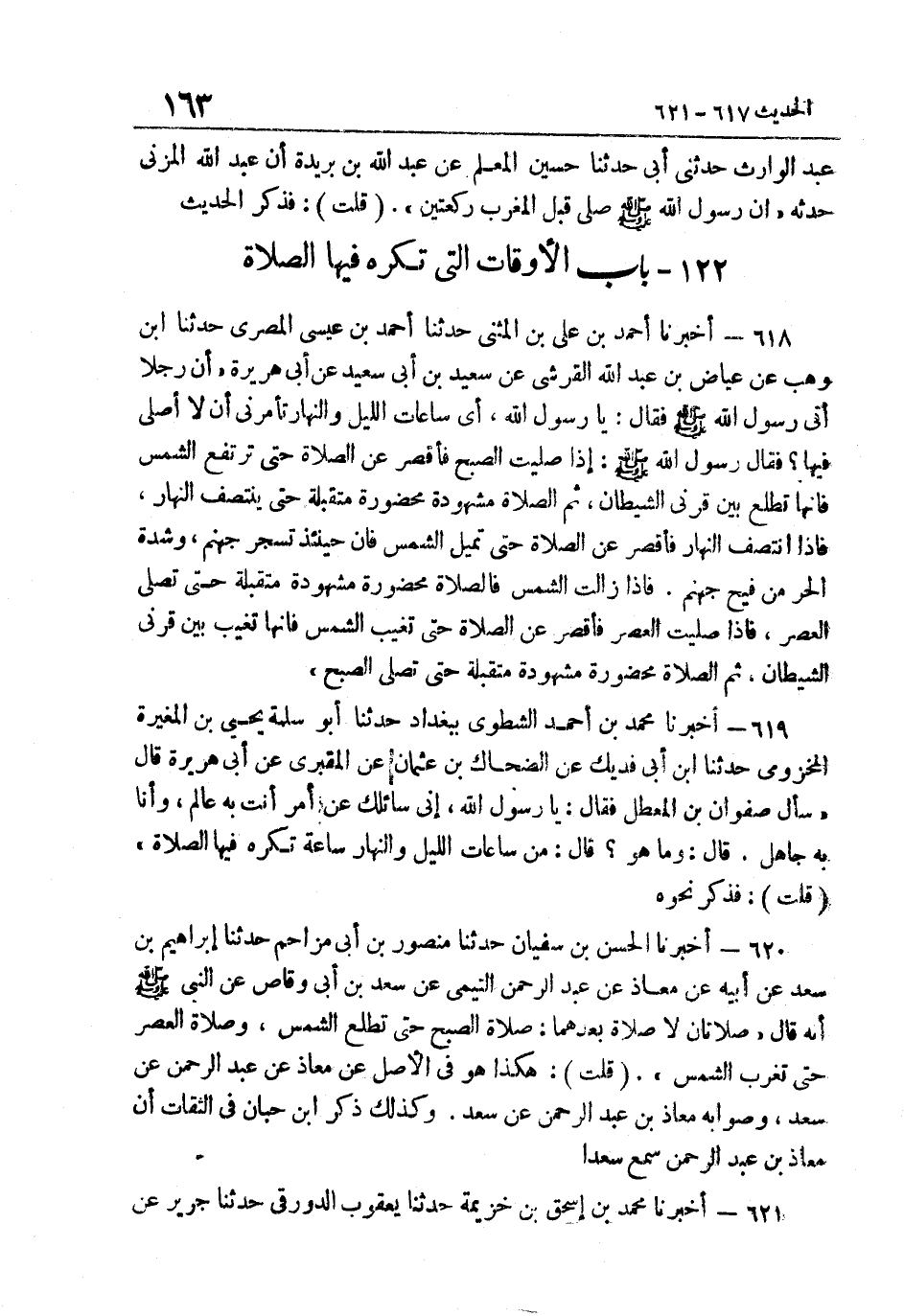 619- أخبرنَا مُحَمَّد بن أَحْمد الشطوي بِبَغْدَاد حَدَّثَنَا أَبُو سَلَمْةَ يَحْيَى بْنُ الْمُغِيرَةِ الْمَخْزُومِيُّ حَدَّثَنَا ابْنُ أَبِي فُدَيْكٍ عَنِ الضَّحَّاكِ بْنِ عُثْمَانَ عَنِ الْمَقْبُرِيِّ عَنْ أَبِي هُرَيْرَةَ قَالَ سَأَلَ صَفْوَان بن الْمُعَطل فَقَالَ يَا رَسُول اللَّهِ إِنِّي سَائِلُكَ عَنْ أَمْرٍ أَنْتَ بِهِ عَالم وَأَنا بِهِ جَاهِل قَالَ: "وَمَا هُوَ" قَالَ: مِنْ سَاعَاتِ اللَّيْلِ وَالنَّهَارِ سَاعَةٌ تُكْرَهُ فِيهَا الصَّلَاة. قلت فَذكر نَحوه.