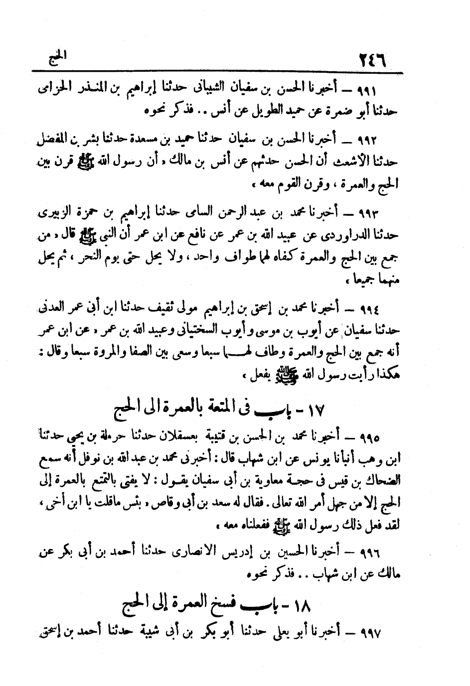 992- أخبرنَا الْحسن بن سُفْيَان حَدثنَا حميد بن مسْعدَة حَدثنَا بشر بن الْمفضل حَدثنَا الْأَشْعَث أَن الْحسن حَدثهمْ عَنْ أَنَسِ بْنِ مَالِكٍ أَنّ رَسُولَ اللَّهِ صَلَّى اللهُ عَلَيْهِ وَسَلَّمَ قَرَنَ بَيْنَ الْحَجِّ وَالْعمْرَة وَقرن الْقَوْم مَعَه.