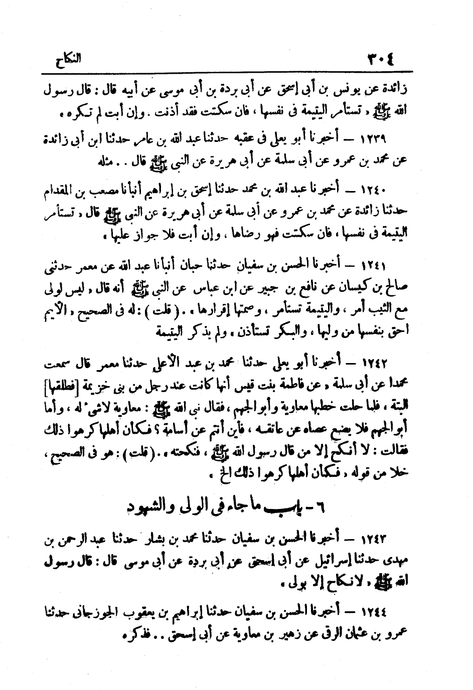 6- بَاب مَا جَاءَ فِي الْوَلِيّ وَالشُّهُود