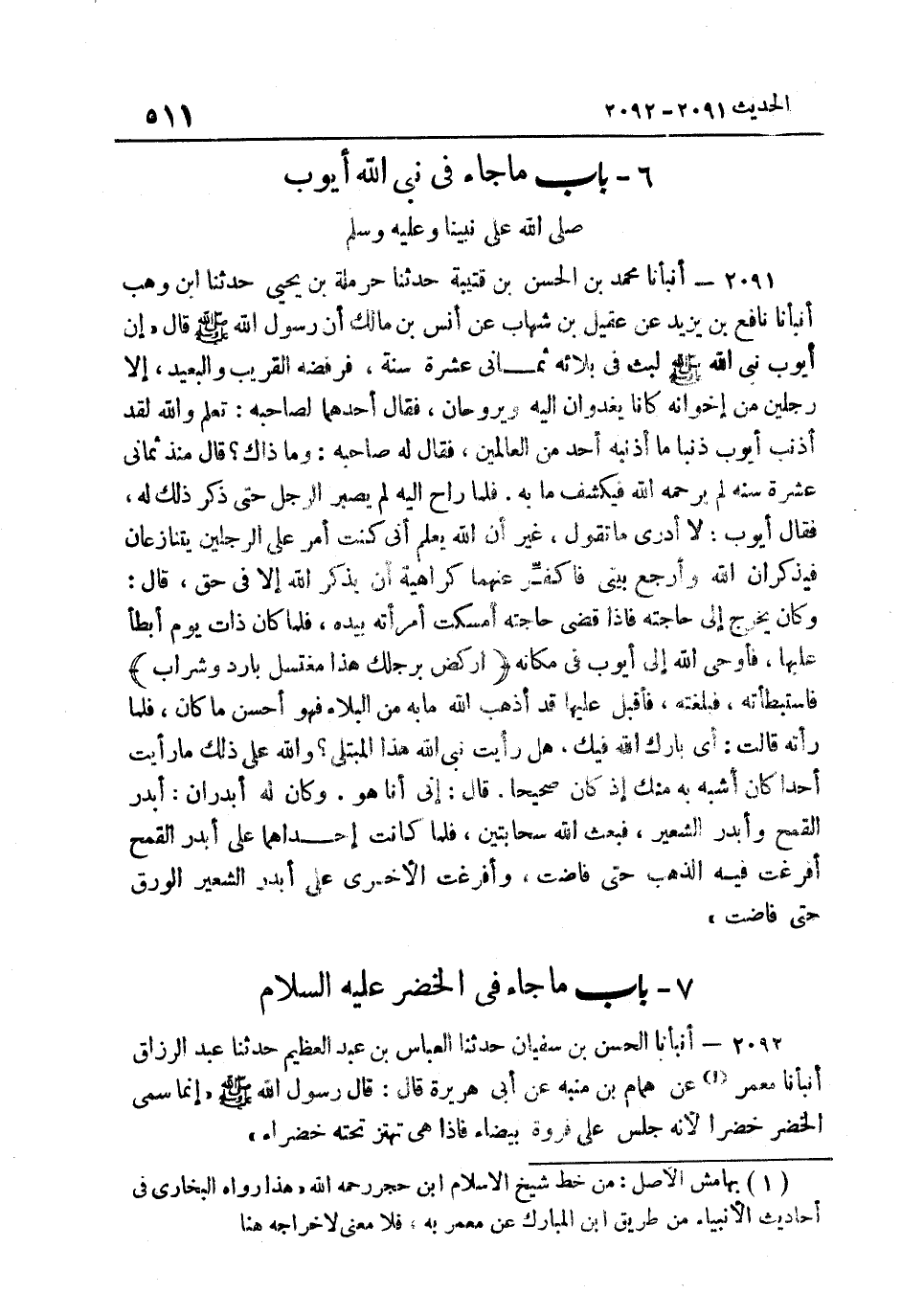 7- بَاب مَا جَاءَ فِي الْخضر عَلَيْهِ السَّلَام
