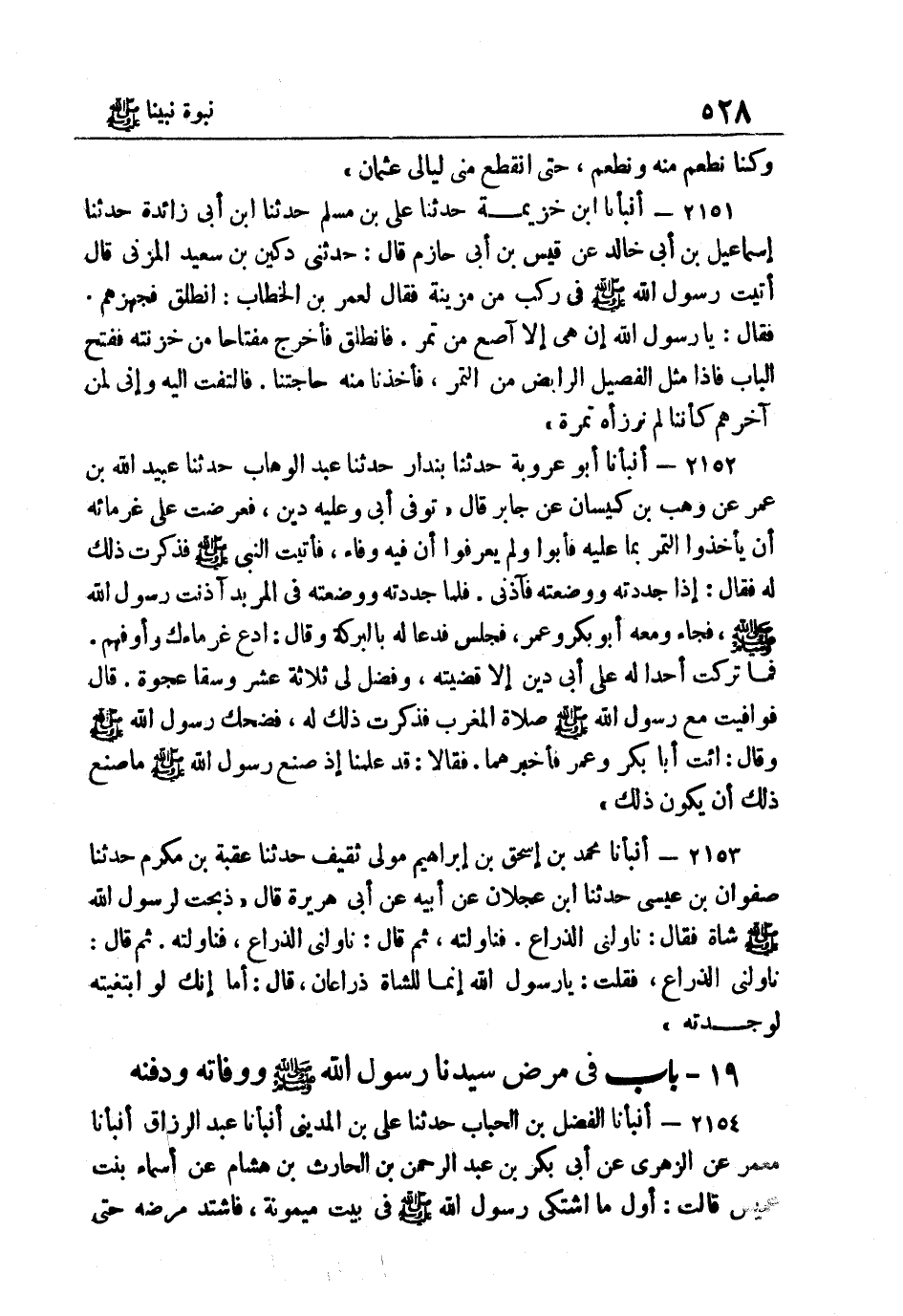 19- بَاب فِي مرض سيدنَا رَسُول الله صَلَّى اللهُ عَلَيْهِ وَسَلَّمَ ووفاته وَدَفنه