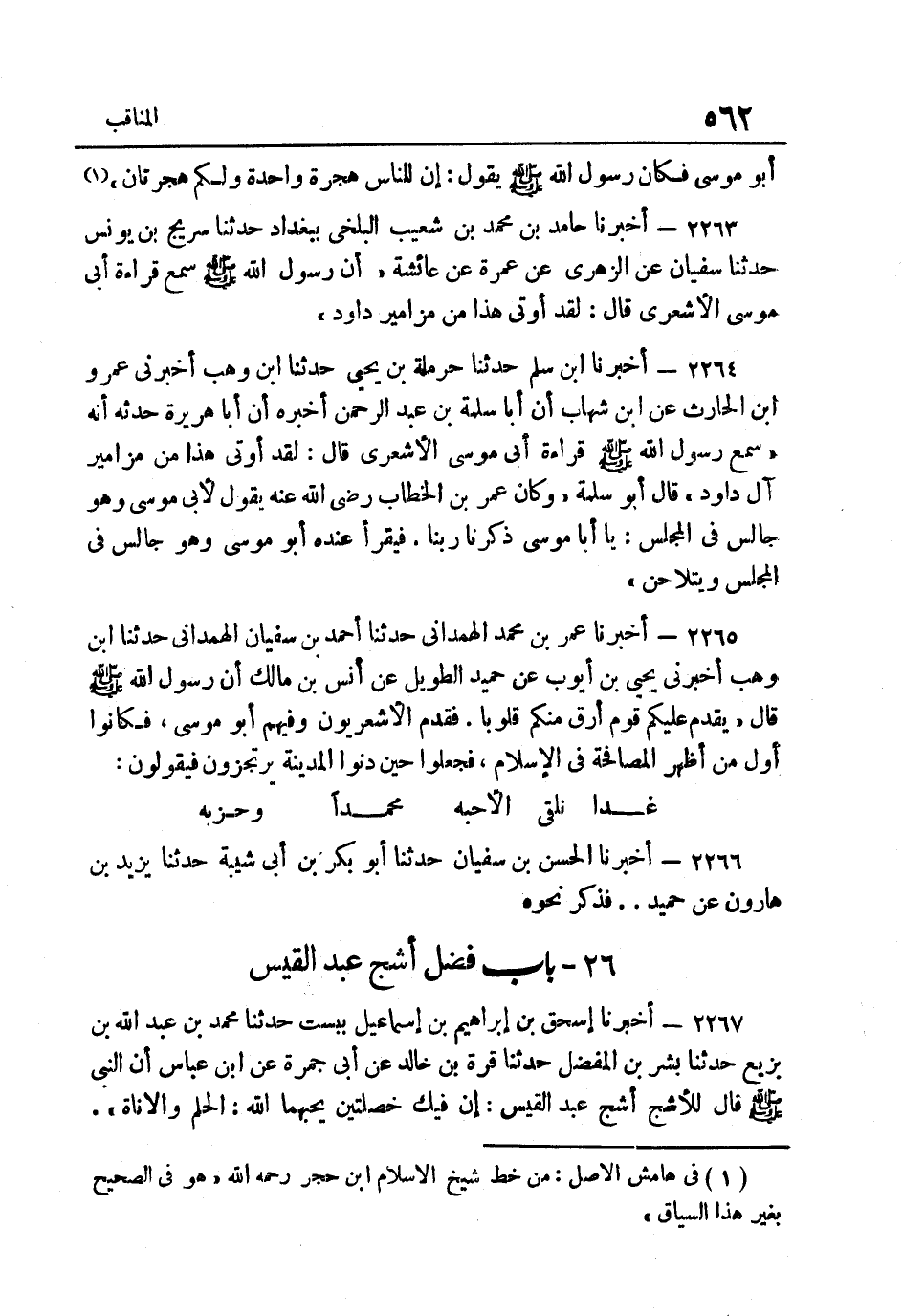 أَبُو مُوسَى فَكَانَ رَسُولُ اللَّهِ صَلَّى اللهُ عَلَيْهِ وَسَلَّمَ يَقُولُ: "إِنَّ لِلنَّاسِ هِجْرَةً وَاحِدَةً وَلكم هجرتان" 1.