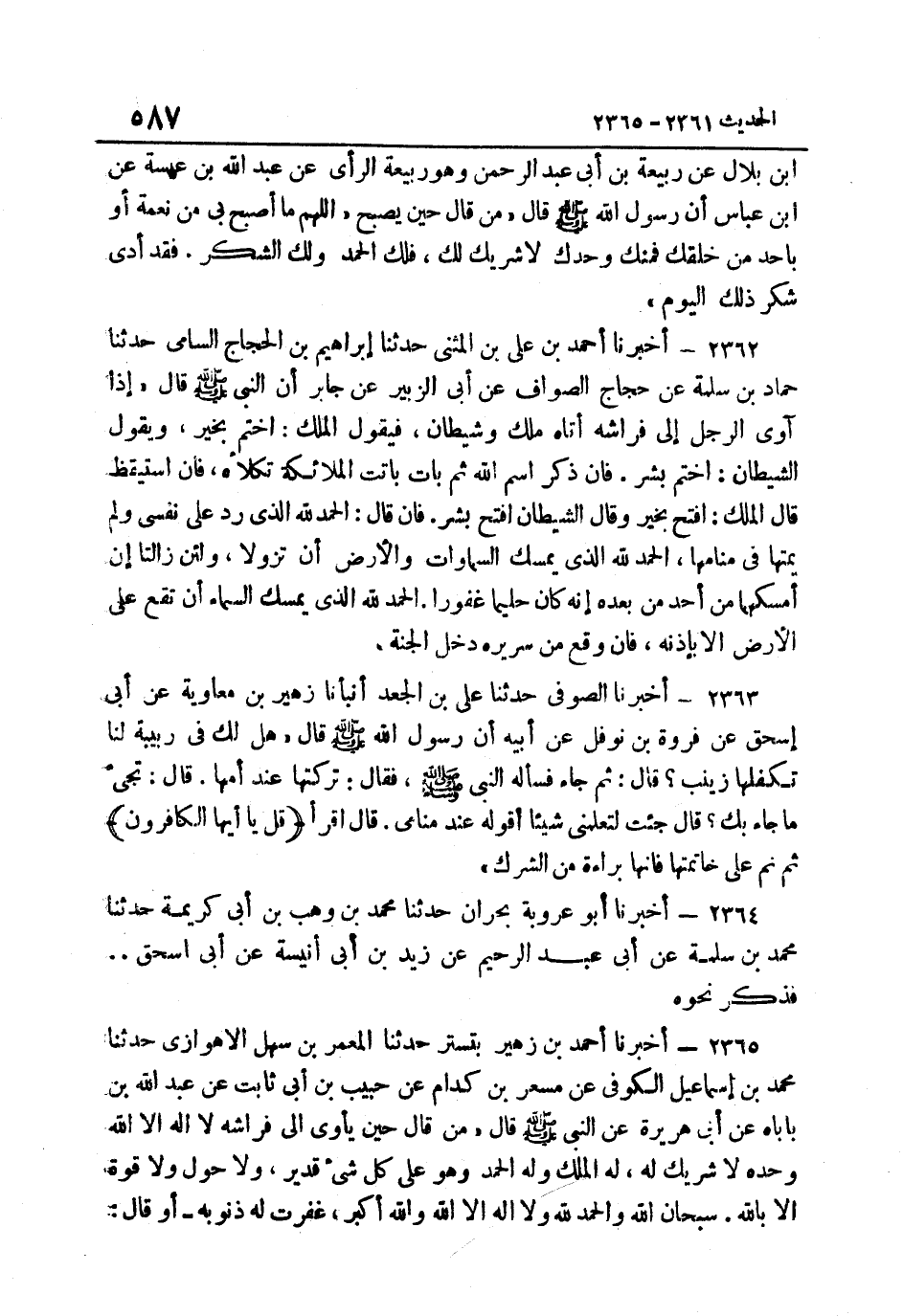 2364- أَخْبَرَنَا أَبُو عَرُوبَةَ بِحَرَّانَ حَدَّثَنَا مُحَمَّدُ بْنُ وَهْبِ بْنِ أَبِي كَرِيمَةَ حَدَّثَنَا مُحَمَّدُ بْنُ سَلَمَةَ عَنْ أَبِي عَبْدِ الرَّحِيمِ عَنْ زَيْدِ بْنِ أَبِي أُنَيْسَةَ عَنْ أبي إِسْحَاق.. فَذكر نَحوه.