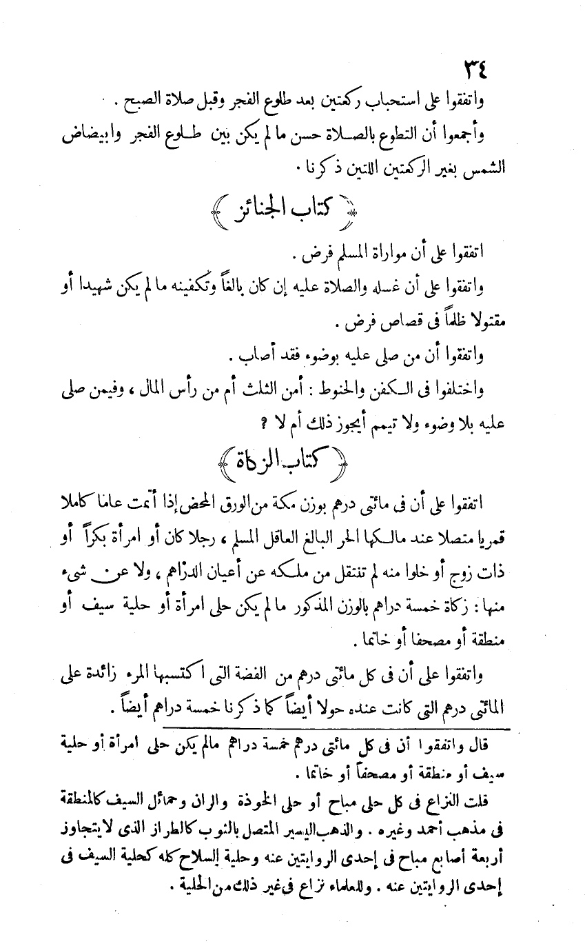 اتَّفقُوا على أَن فِي مِائَتي دِرْهَم بِوَزْن مَكَّة من الْوَرق الْمَحْض إذا أتمت عَاما كَامِلا قمريا مُتَّصِلا عِنْد مَالِكهَا الْحر الْبَالِغ الْعَاقِل الْمُسلم رجلا كَانَ أَو امْرَأَة بكرا أَو ذَات زوج أَو خلوا مِنْهُ لم تنْتَقل من ملكه عَن أَعْيَان الدَّرَاهِم وَلَا عَن شَيْء مِنْهَا زَكَاة خَمْسَة دَرَاهِم بِالْوَزْنِ الْمَذْكُور مَا لم يكن حلى امْرَأَة أَو حلية سيف أَو منْطقَة أَو مُصحفا أَو خَاتمًا (¬1)