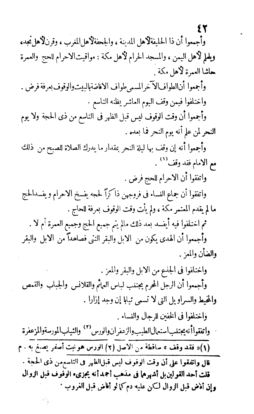 وَأَجْمعُوا أَن ذَا الحليفة لأهل الْمَدِينَة والجحفة لأهل الْمغرب وَقرن لاهل نجد ويلملم لاهل الْيمن وَالْمَسْجِد الْحَرَام لاهل مَكَّة مَوَاقِيت الاحرام لِلْحَجِّ وَالْعمْرَة حاشا الْعمرَة لأهل مَكَّة