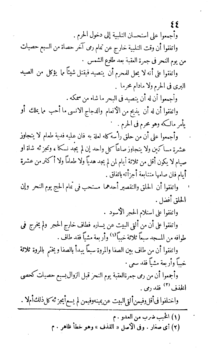وَاتَّفَقُوا أَن لَهُ أَن يذبح من الانعام والدجاج الانسى مَا أحب مِمَّا يملك أَو يَأْمر مَالِكه وَهُوَ محرم فِي الْحرم