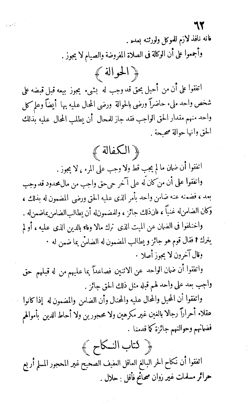 اتَّفقُوا أَن نِكَاح الْحر الْبَالِغ الْعَاقِل الْعَفِيف الصَّحِيح غير الْمَحْجُور الْمُسلم أَربع حرائر مسلمات غير زوان صحائح فَأَقل حَلَال