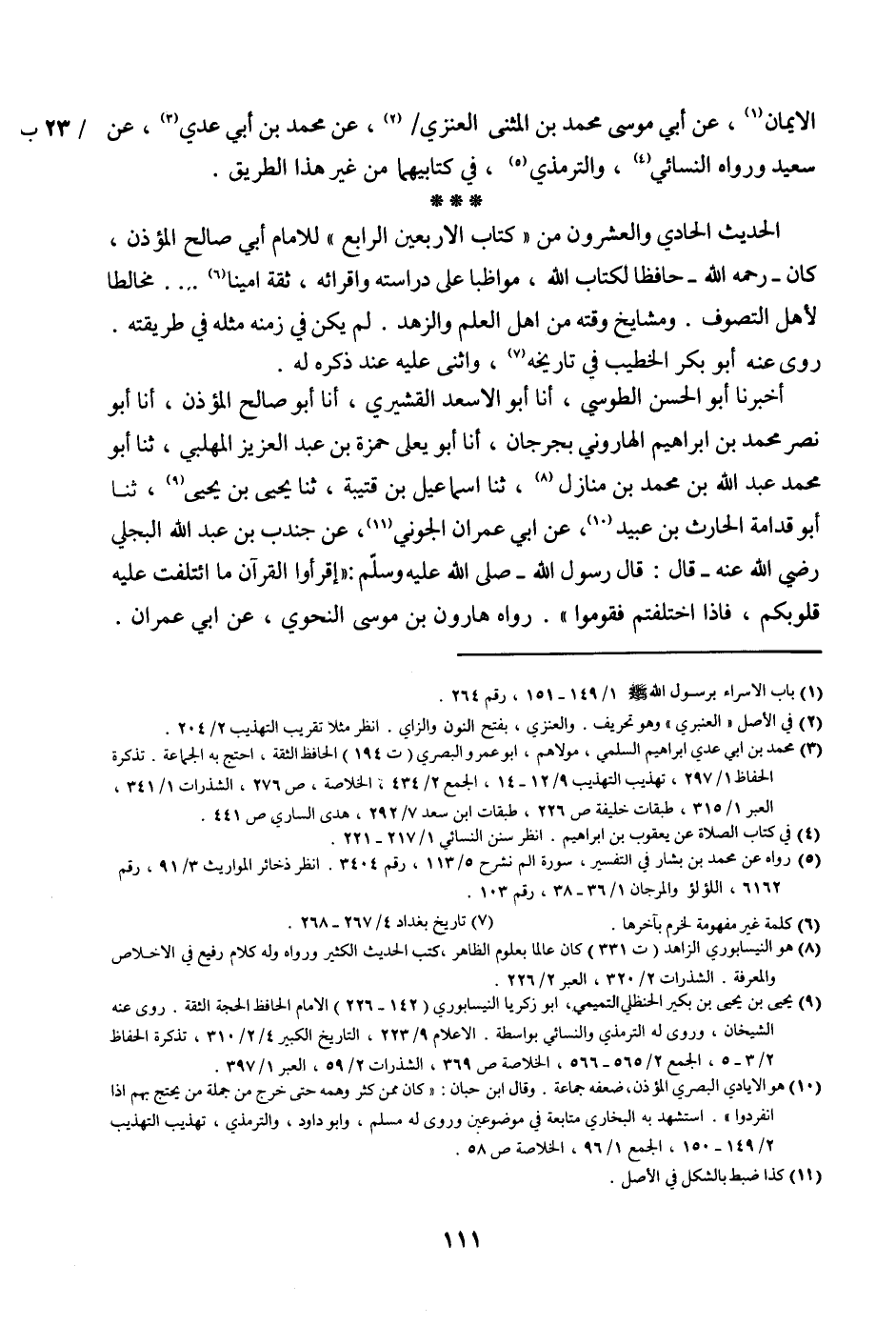 الإيمان، عن أبي موسى محمد بن المثنى العنزي، عن محمد بن أبي عدي، عن سعيد ورواه النسائي، والترمذي، في كتابيهما من غير هذا الطريق.