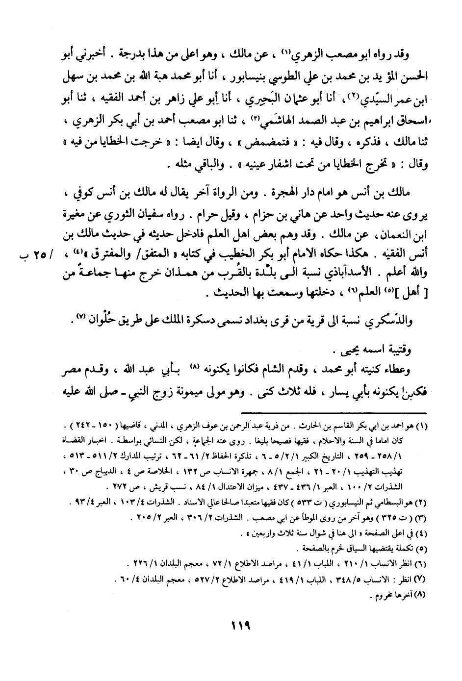 مالك بن أنس هو إمام دار الهجرة. ومن الرواة آخر يقال له مالك بن أنس كوفي، يروى عنه حديث واحد عن هاني بن حزام، وقيل حرام. رواه سفيان الثوري عن مغيرة ابن النعمان، عن مالك. وقد وهم بعض أهل العلم فأدخل حديثه في حديث مالك بن أنس الفقيه. هكذا حكاه الإمام أبو بكر الخطيب في كتابه ((المتفق والمفترق)) ، والله أعلم. الأسدآباذي نسبة إلى بلدة بالقرب من همذان خرج منها جماعة من [أهل] العلم، دخلتها وسمعت بها الحديث.