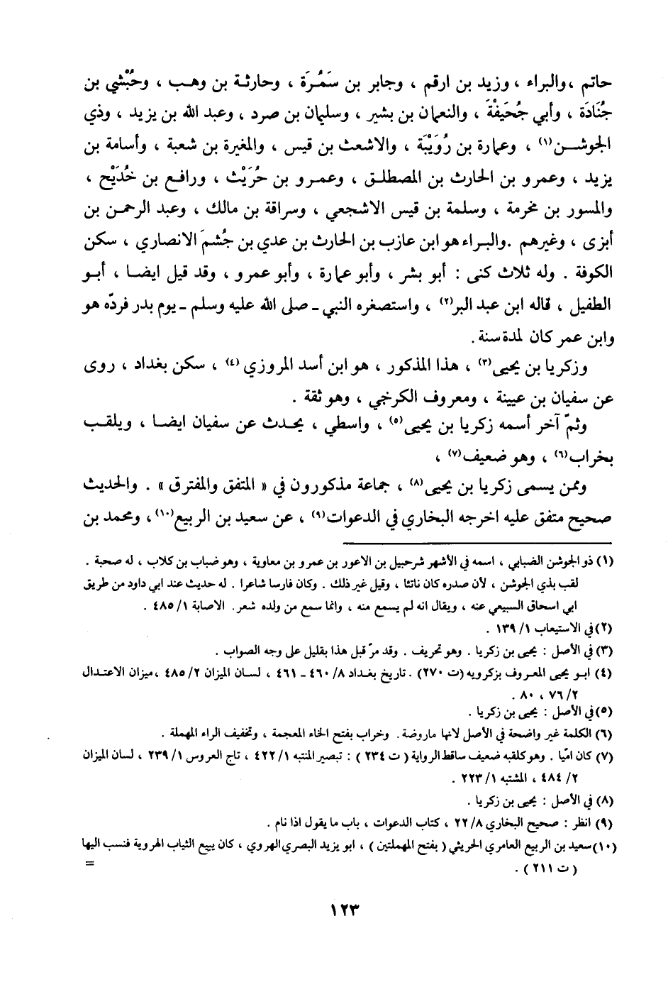 حاتم، والبراء، وزيد بن أرقم، وجابر بن سمرة، وحارثة بن وهب، وحبشي بن جنادة، وأبي جحيفة، والنعمان بن بشير، وسليمان بن صرد، وعبد الله بن يزيد، وذي الجوشن، وعمارة بن رويبة، والأشعث بن قيس، والمغيرة بن شعبة، وأسامة بن يزيد، وعمرو بن الحارث بن المصطلق، وعمرو بن حريث، ورافع بن خديج، والمسور بن مخرمة، وسلمة بن قيس الأشجعي، وسراقة بن مالك، وعبد الرحمن بن أبزى، وغيرهم. والبراء هو ابن عازب بن الحارث بن عدي بن جشم الأنصاري، سكن الكوفة. وله ثلاث كنى: أبو بشر، وأبو عمارة، وأبو عمرو، وقد قيل أيضاً، أبو الطفيل، قاله ابن عبد البر، واستصغره النبي - صلى الله عليه وسلم - يوم بدر فرده هو وابن عمر كان لمدة سنة.