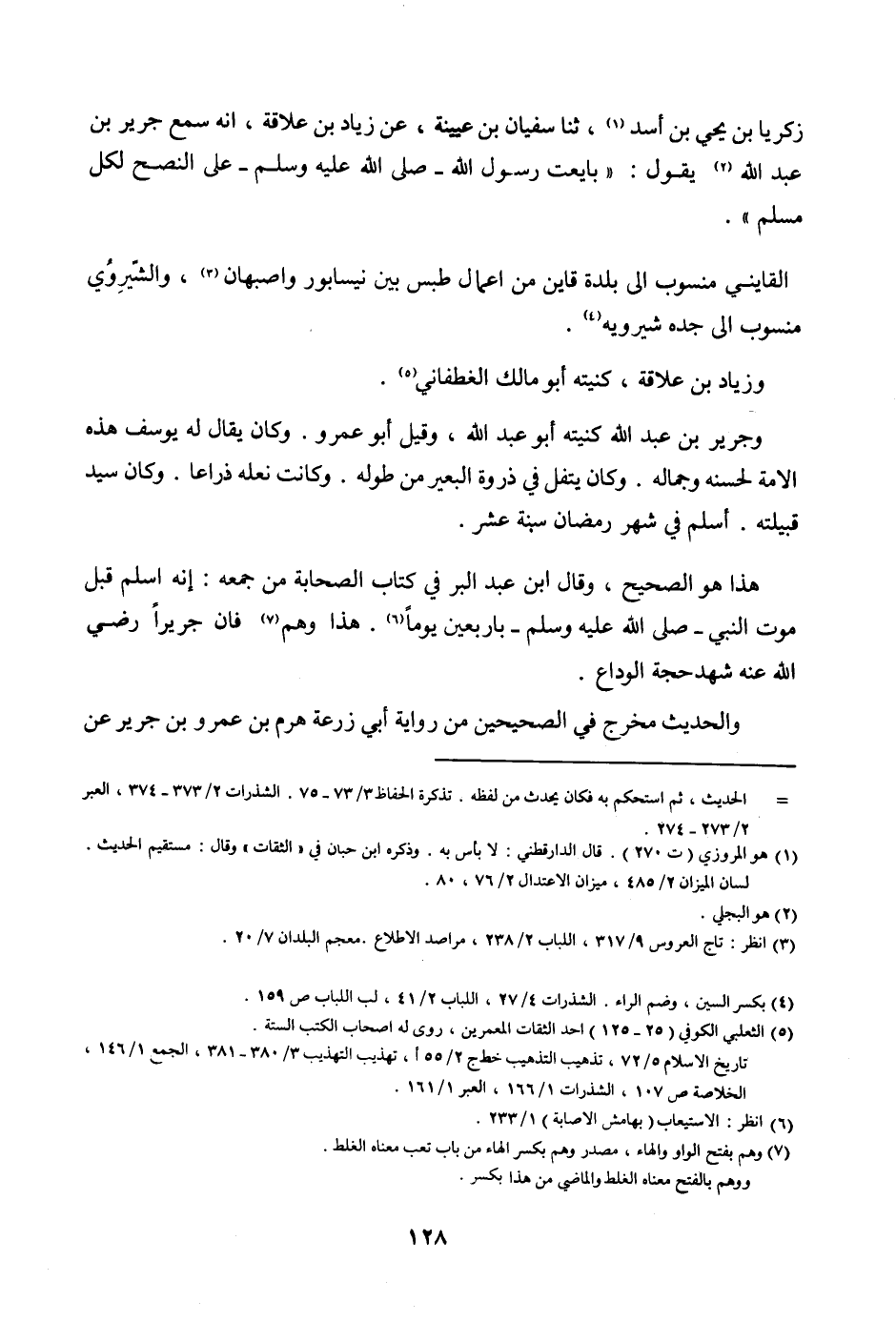 زكريا بن يحيى بن أسد، ثنا سفيان بن عيينة، عن زياد بن علاقة، أنه سمع جرير بن عبد الله يقول: ((بايعت رسول الله - صلى الله عليه وسلم - على النصح لكل مسلم)) .