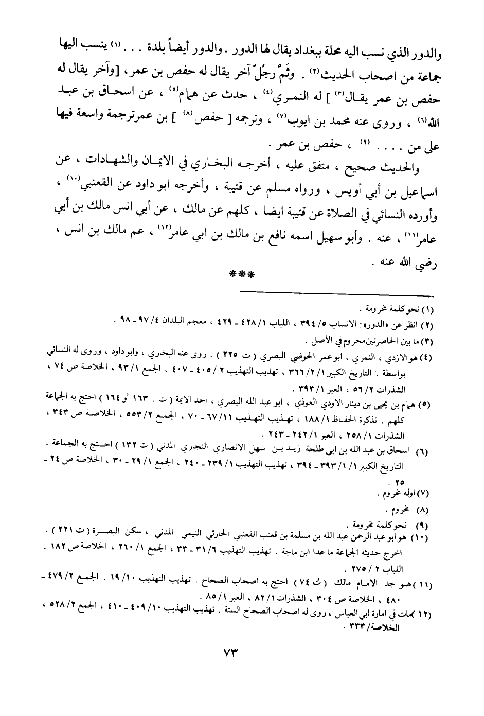 والدور الذي نسب إليه محلة ببغداد يقال لها الدور. والدور أيضاً بلدة ... ينسب إليها جماعة من أصحاب الحديث. وثم رجلٌ آخر يقال له حفص بن عمر، [وآخر يقال له حفص بن عمر يقال] له النمري، حدث عن همام، عن إسحاق بن عبد الله، وروى عنه محمد بن أيوب، وترجمه [حفص] بن عمر ترجمة واسعة فيها على من ... ، حفص بن عمر.