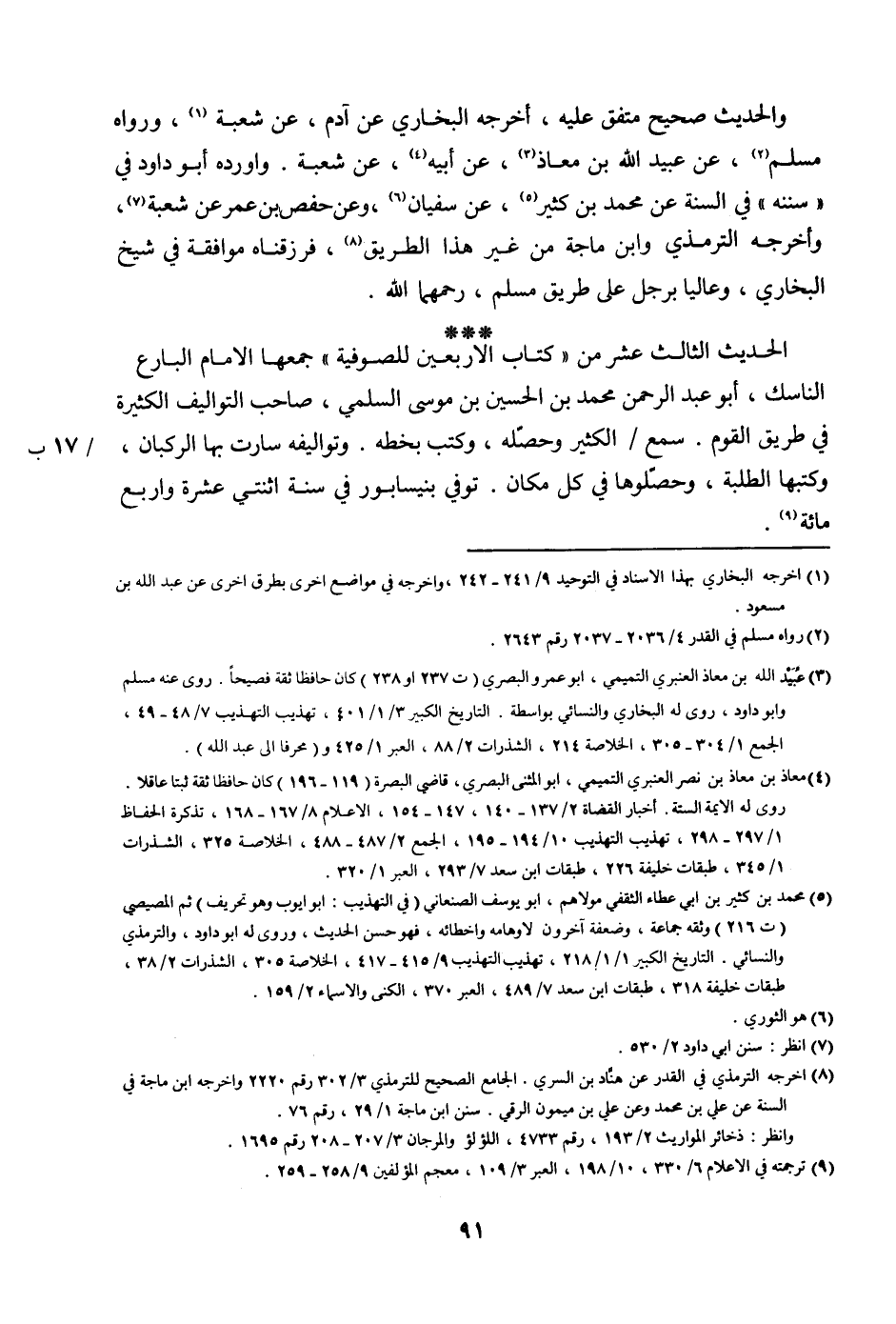 الحديث الثالث عشر من ((كتاب الأربعين للصوفية)) جمعها الإمام البارع الناسك، أبو عبد الرحمن محمد بن الحسين بن موسى السلمي، صاحب التواليف الكثيرة في طريق القوم. سمع الكثير وحصله، وكتب بخطه. وتواليفه سارت بها الركبان، وكتبها الطلبة، وحصلوها في كل مكان. توفي بنيسابور في سنة اثنتي عشرة وأربع مائة.