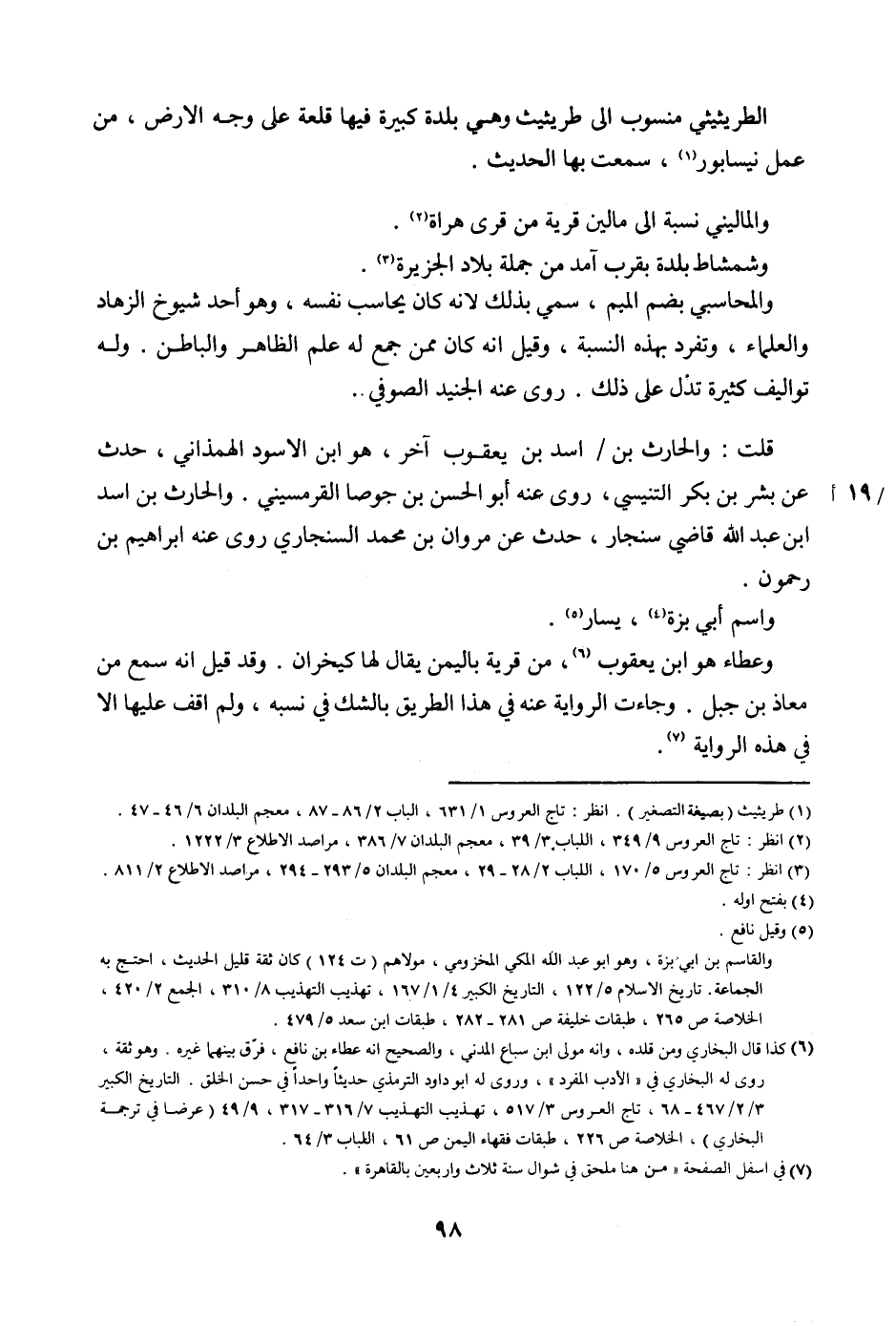 قلت: والحارث بن أسد بن يعقوب آخر، هو ابن الأسود الهمذاني، حدث عن بشر بن بكر التنيسي، روى عنه أبو الحسن بن جوصا القرمسيني. والحارث بن أسد ابن عبد الله قاضي سنجار، حدث عن مروان بن محمد السنجاري روى عنه إبراهيم بن رحمون.