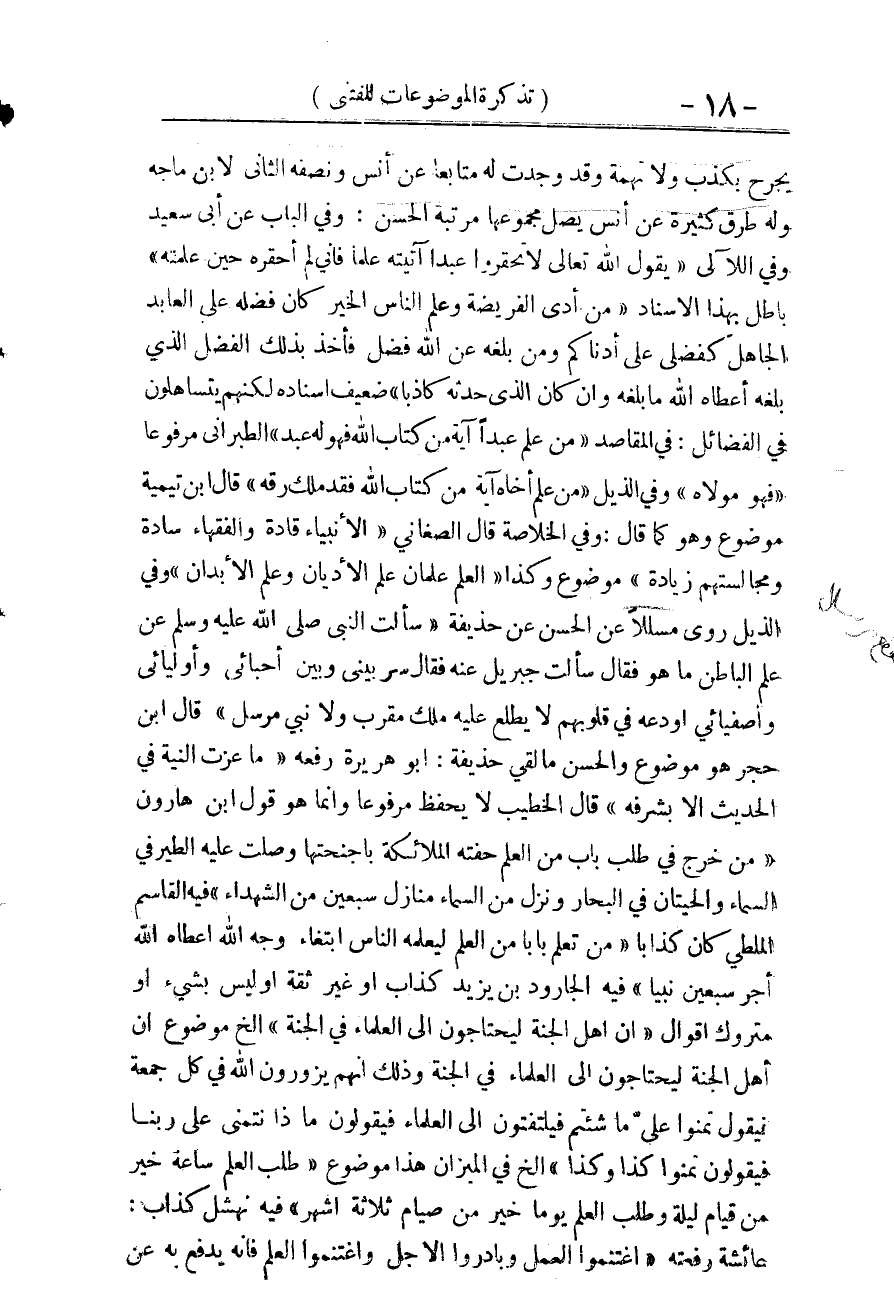 «إِنَّ أَهْلَ الْجَنَّةِ لَيَحْتَاجُونَ إِلَى الْعلمَاء فِي الْجنَّة» إِلَخ. مَوْضُوع.