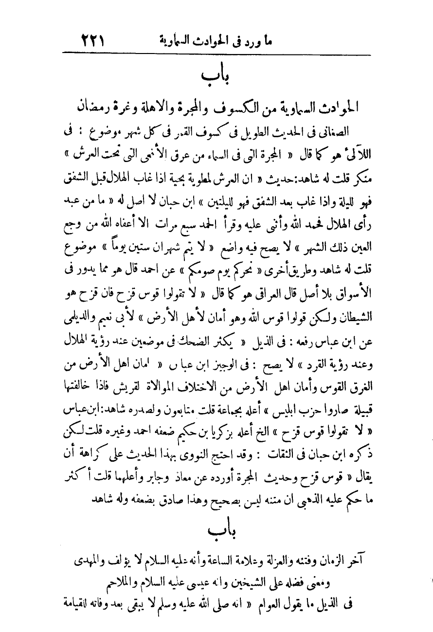 بَابُ الْحَوَادِثِ السَّمَاوِيَّةِ مِنَ الْكُسُوفِ والمجرة والأهلة وغرة رَمَضَان.
