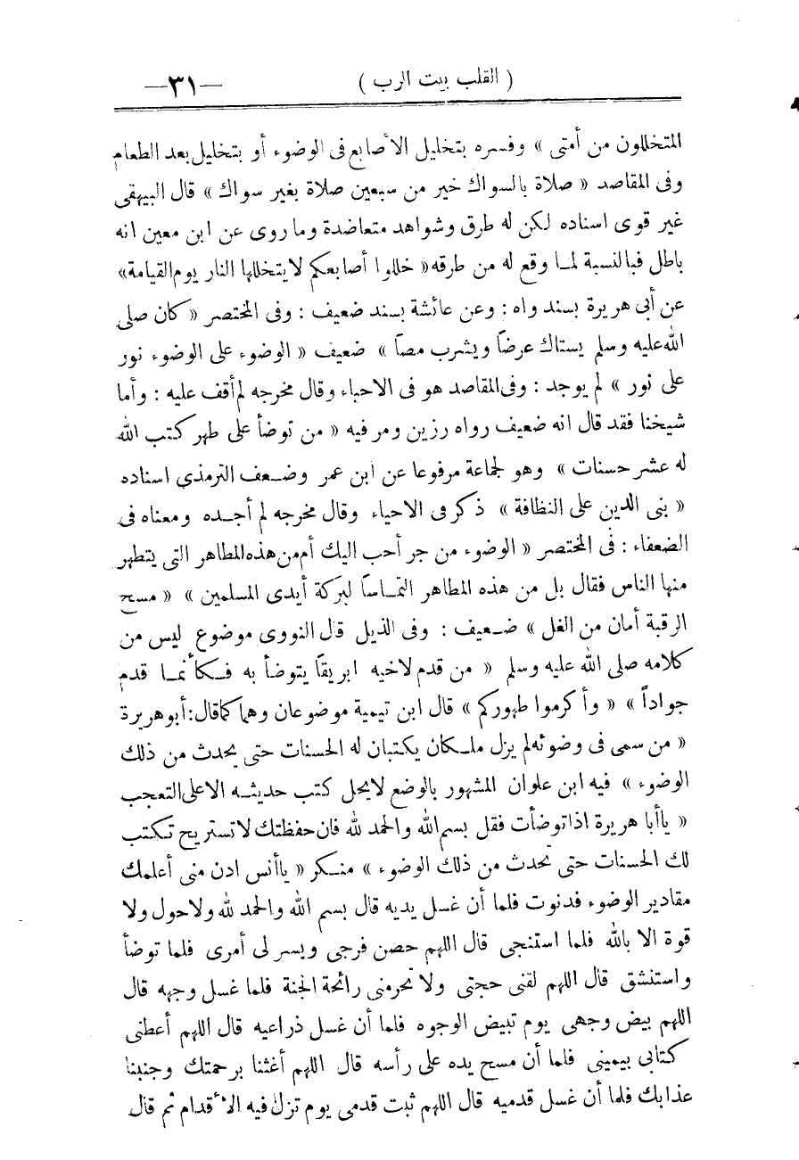 «مَنْ سَمَّى فِي وُضُوئِهِ لَمْ يَزَلْ مَلَكَانِ يَكْتُبَانِ لَهُ الْحَسَنَاتِ حَتَّى يُحْدِثَ مِنْ ذَلِكَ الْوُضُوءِ» فِيهِ ابْن علوان الْمَشْهُور بِالْوَضْعِ لَا يحل كتب حَدِيثه إِلَّا على التَّعَجُّب.