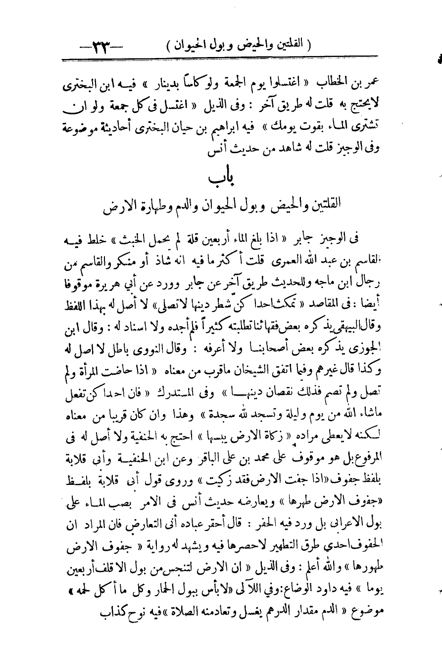 بَاب الْقلَّتَيْنِ وَالْحيض وَبَوْل الْحَيَوَان وَالدَّم وطهارة الأَرْض.