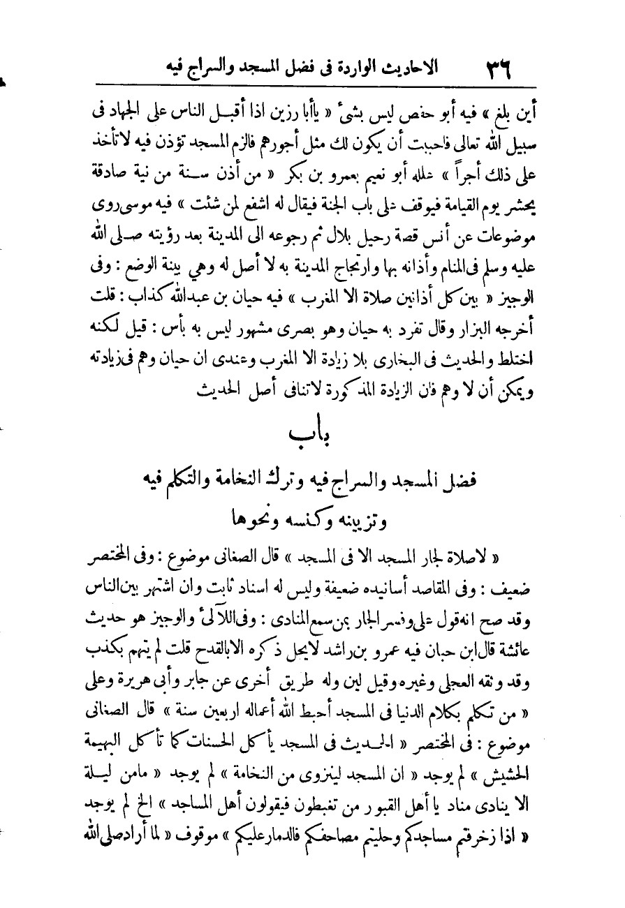 فِي الْمُخْتَصر «الْحَدِيثُ فِي الْمَسْجِدِ يَأْكُلُ الْحَسَنَاتِ كَمَا تَأْكُلُ الْبَهِيمَةُ الْحَشِيشَ» لَمْ يُوجد.