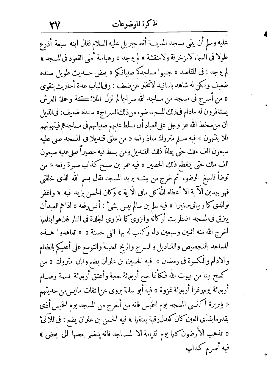 وَفِي الْبَاب عدَّة أَحَادِيث يتقوى «مَنْ أَسْرَجَ فِي مَسْجِدٍ مِنْ مَسَاجِدِ اللَّهِ سِرَاجًا لَمْ تَزَلِ الْمَلائِكَةُ وَحَمَلَةُ الْعَرْشِ يَسْتَغْفِرُونَ لَهُ مَا دَامَ فِي ذَلِكَ الْمَسْجِدِ ضَوْءٌ مِنْ ذَلِكَ السِّرَاجِ» سَنَدُهُ ضَعِيف.