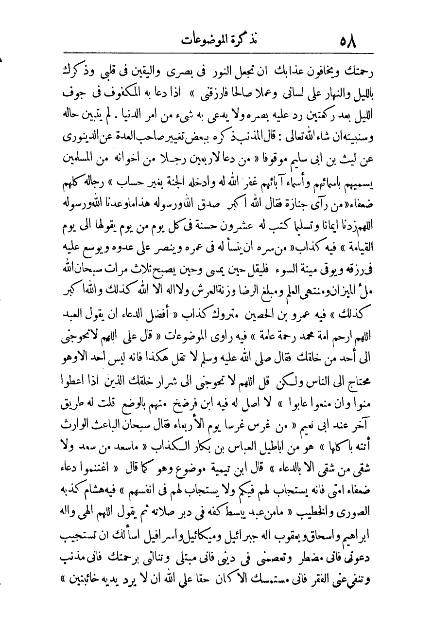 «أَفْضَلُ الدُّعَاءِ أَنْ يَقُولَ الْعَبْدُ اللَّهُمَّ ارْحَمْ أُمَّةَ مُحَمَّدٍ رَحْمَةً عَامَّة» فِيهِ رَاوِي الموضوعات.