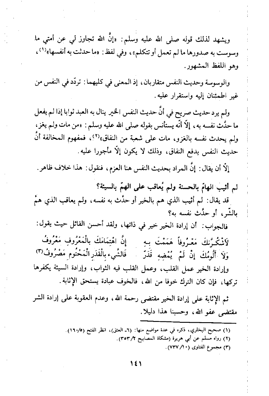 ثم الإثابة على إرادة الخير مقتضى رحمة الله، وعدم العقوبة على إرادة الشر مقتضى عفو الله، وحسبنا هذا دليلا.