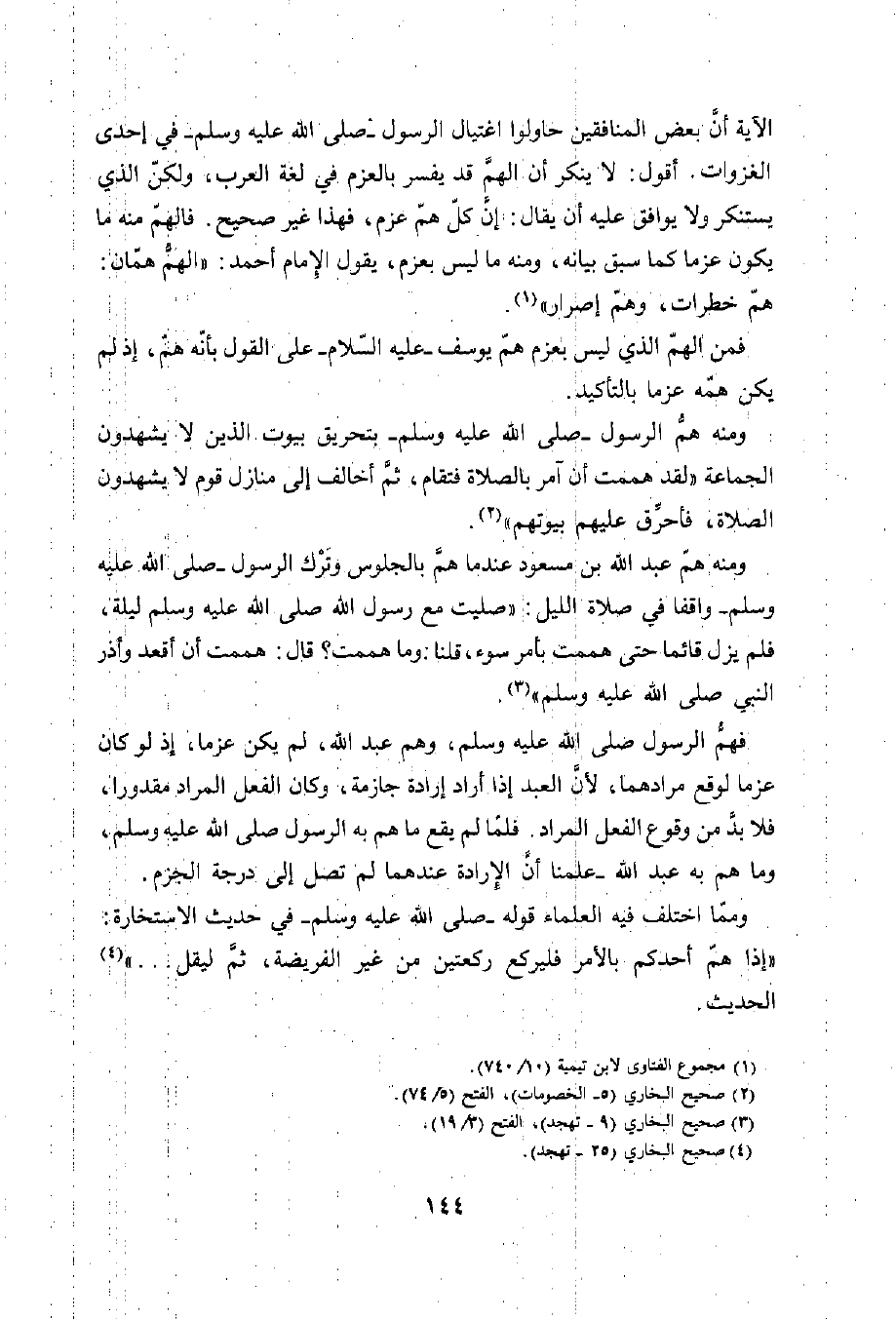 فهمُّ الرسول صلى الله عليه وسلم، وهم عند الله، لم يكن عزما، إذ لو كان عزما لوقع مرادهما، لأن العبد إذا أراد إرادة جازمة، وكان الفعل المراد مقدورا، فلا بد من وقوع الفعل المراد. فلمّا لم يقع ما هم به الرسول صلى الله عليه وسلم، وما هم به عبد الله - علمنا أن الإرادة عندهما لم تصل إلى درجة الجزم.