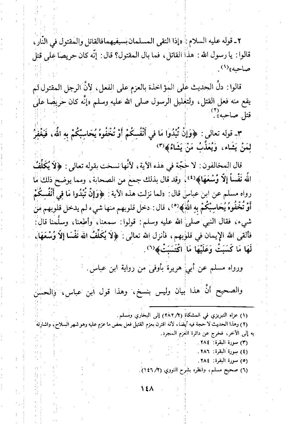 (¬2) وهذا الحديث لا حجة فيه أيضا، لأنه اقترن بعزم القتيل فعل بعض ما عزم عليه وهو شهر السلاح، وإشارته به إلى الآخر، فخرج عن دائرة العزم المجرد.