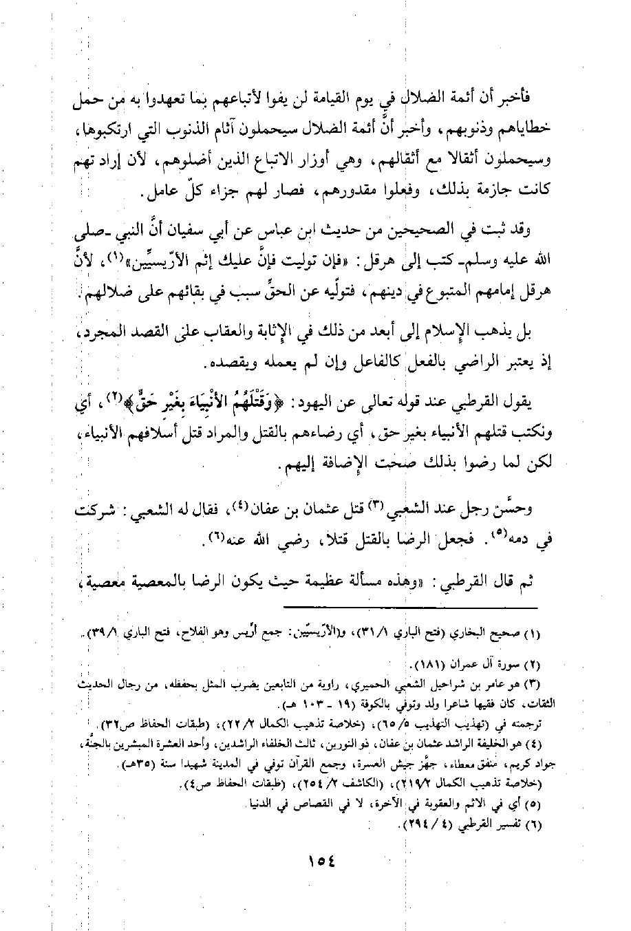 وحسَّن رجل عند الشعبي (¬3) قتل عثمان بن عفان (¬4)، فقال له الشعبي: شركت في دمه (¬5). فجعل الرضا بالقتل قتلا، رضي الله عنه (¬6).