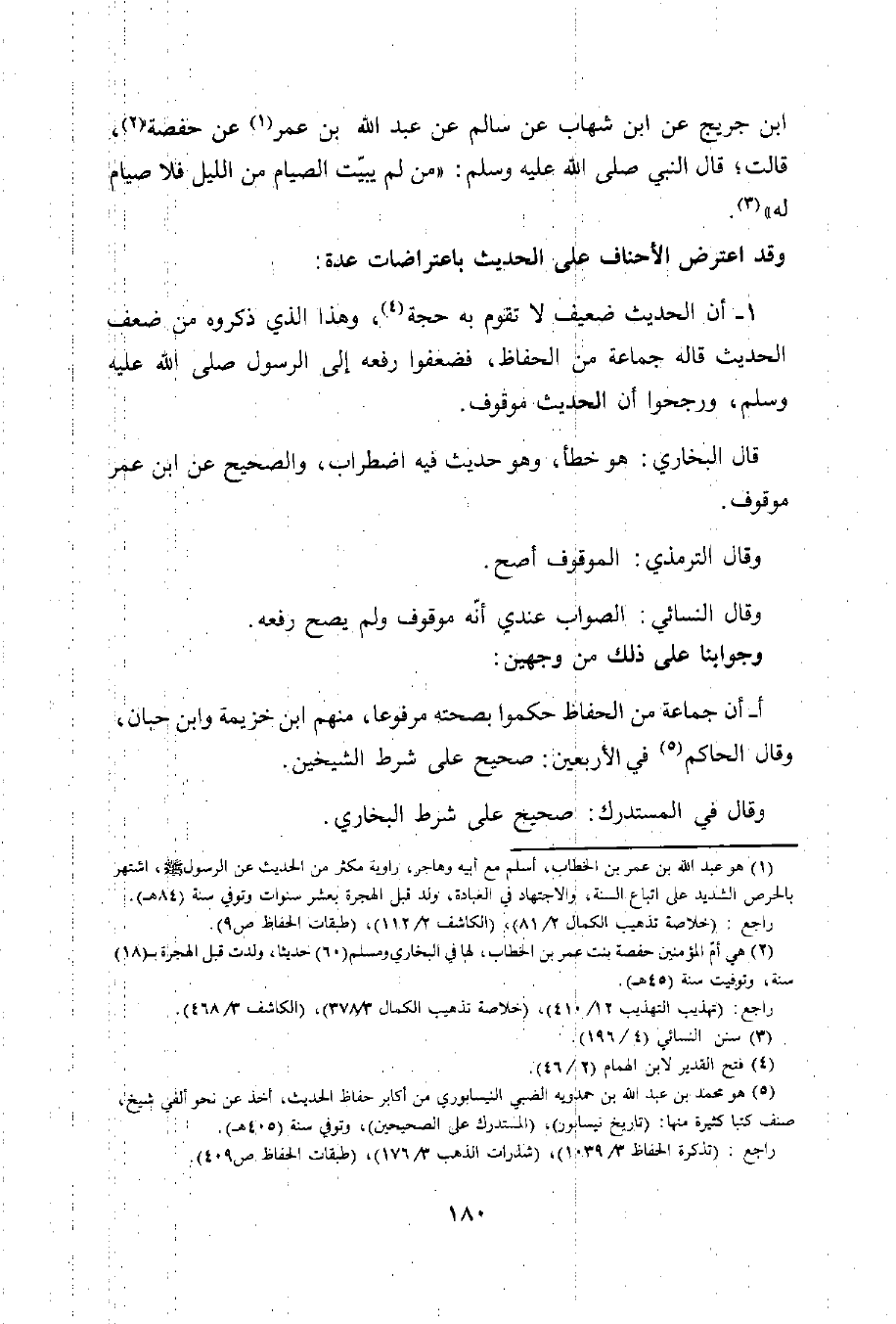 ابن جريج عن ابن شهاب عن سالم عن عبد الله بن عمر (¬1) عن حفصة (¬2)، قالت؛ قال النبي صلى الله عليه وسلم: "من لم يبيّت الصيام من الليل فلا صيام له" (¬3).