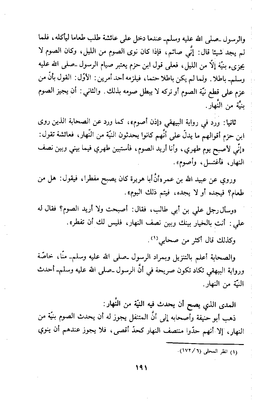 ثانيا: ورد في رواية البيهقي "إذن أصوم"، كما ورد عن الصحابة الذين روى ابن حزم أقوالهم ما يدلّ على أنهم كانوا يحدثون النية من النّهار، فعائشة تقول: "إني لأصبح يوم طهري، وأنا أريد الصوم، فأستبين طهري فيما بيني وبين نصف النهار، فأغتسل، وأصوم".