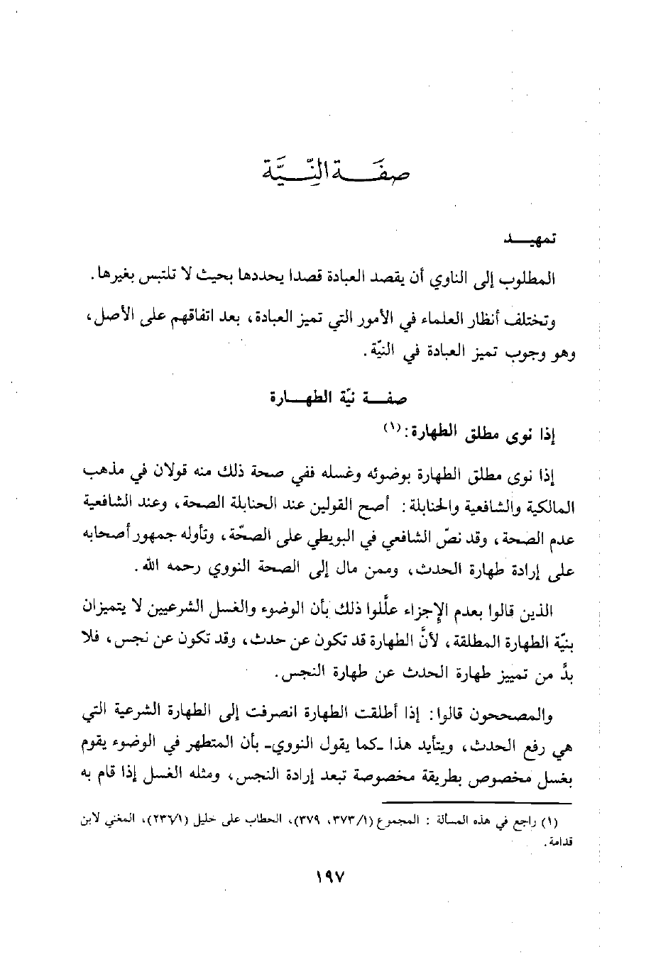 (¬1) راجع في هذه المسألة: المجموع (1/ 373، 379)، الحطاب على خليل (1/ 237)، المغني لابن قدامة.