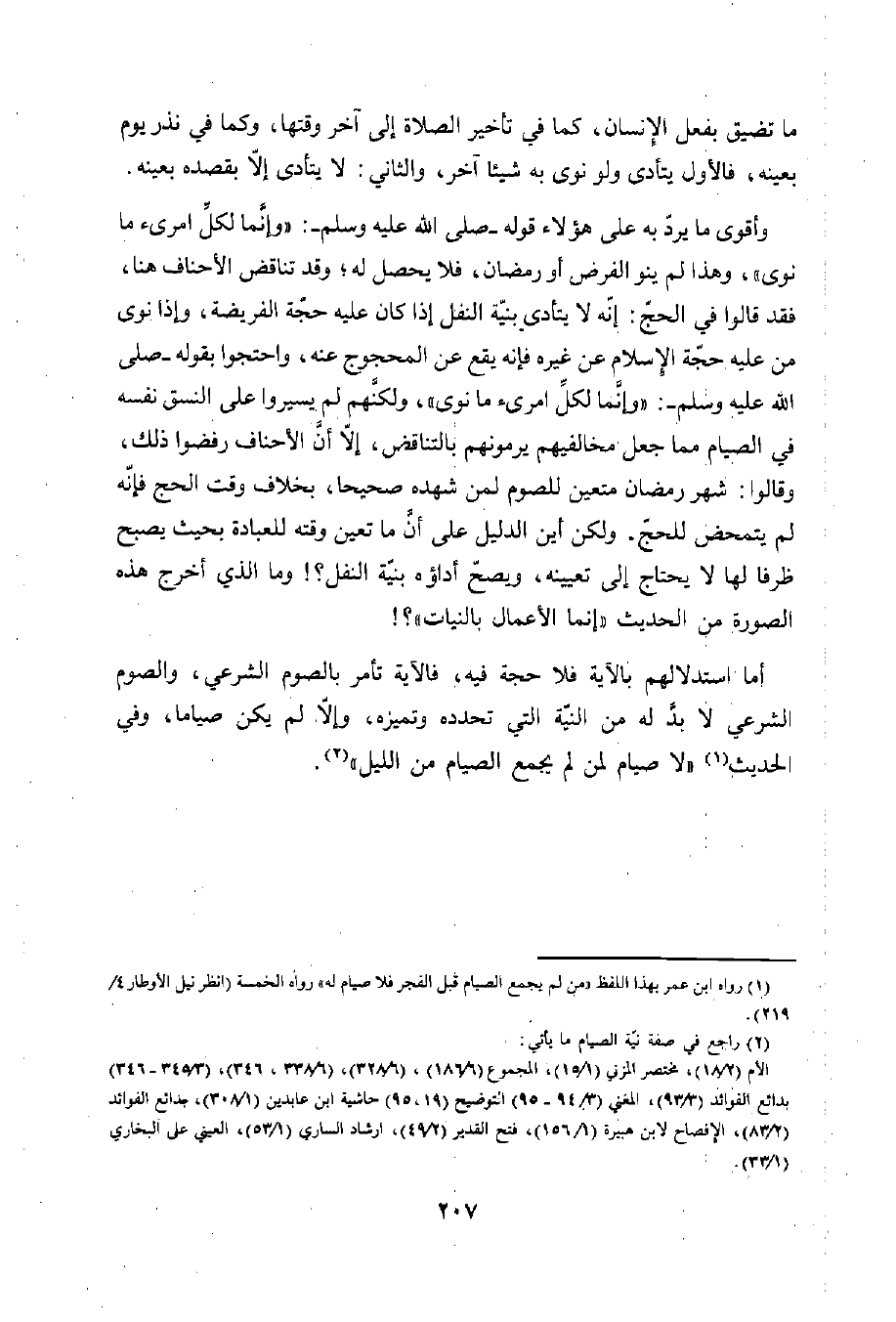 أما استدلالهم بالآية فلا حجة فيه، فالآية تأمر بالصوم الشرعي، والصوم الشرعي لا بدَّ له من النية التي تحدده وتميزه، وإلاّ لم يكن صياما، وفي الحدث (¬1) "لا صيام لمن لم يجمع الصيام من الليل" (¬2).