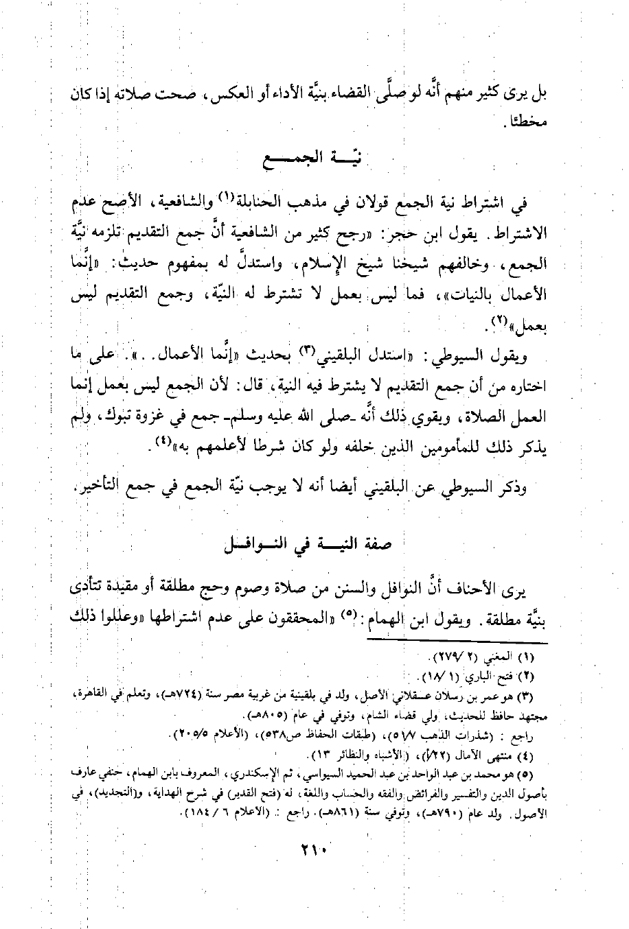 وذكر السيوطي عن البلقيني أيضا أنه لا يوجب نيّة الجمع في جمع التأخير.