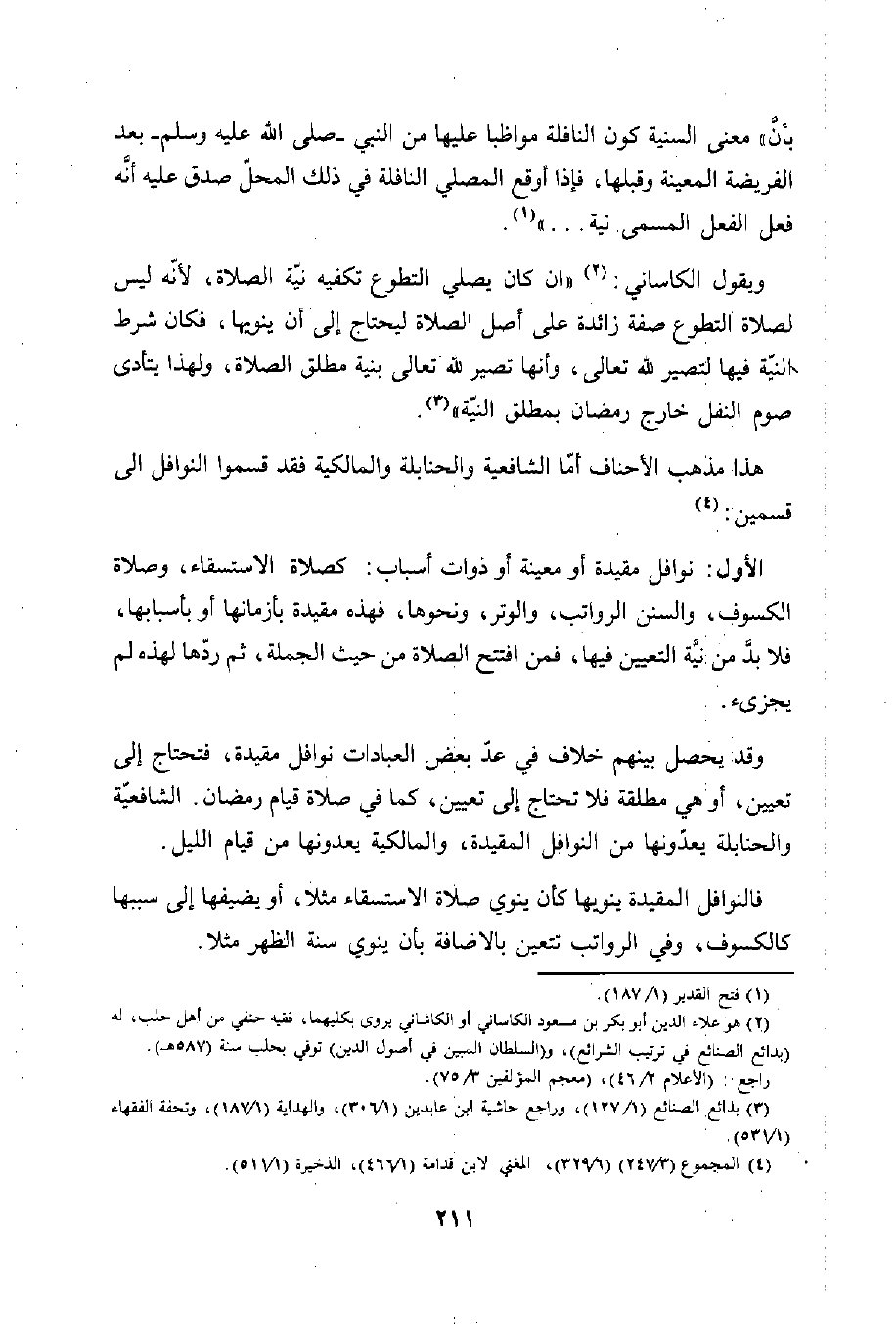 هذا مذهب الأحناف أمّا الشافعية والحنابلة والمالكية فقد قسموا النوافل إلى قسمين: (¬4)