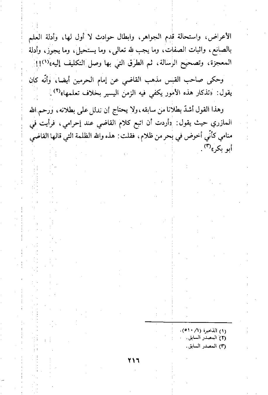 وهذا القول أشدّ بطلانا من سابقه، ولا يحتاج أن ندلل على بطلانه، ورحم الله المازري حيث يقول: "أردت أن اتبع كلام القاضي عند إحرامي، فرأيت في منامي كأنّي أخوض في بحر من ظلام، فقلت: هذه والله الظلمة التي قالها القاضي أبو بكر" (¬3).