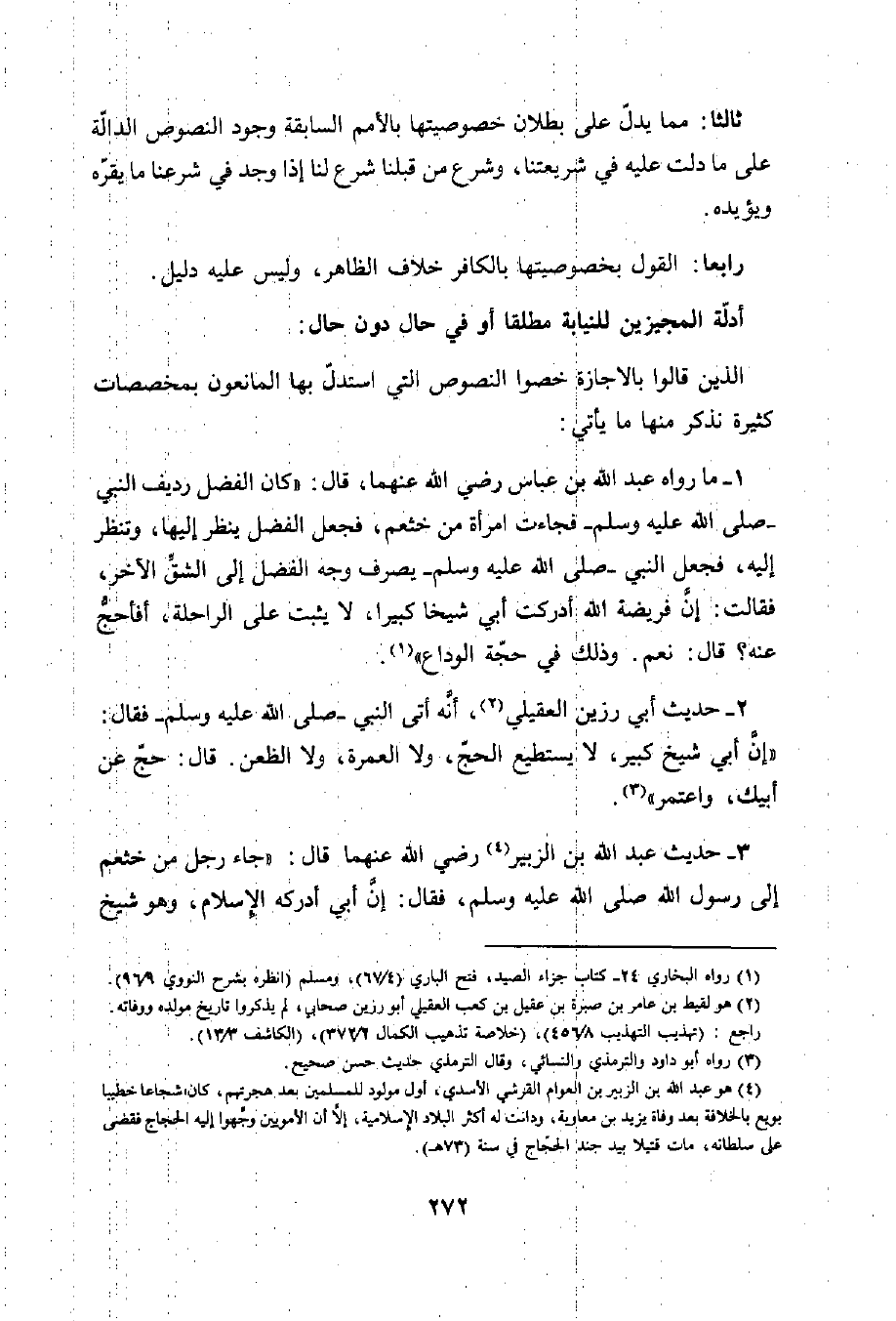 3 - حديث عبد الله بن الزبير (¬4) رض الله عنهما قال: "جاء رجل من خثعم إلى رسول الله صلى الله عليه وسلم، فقال: إن أبي أدركه الإسلام، وهو شيخ