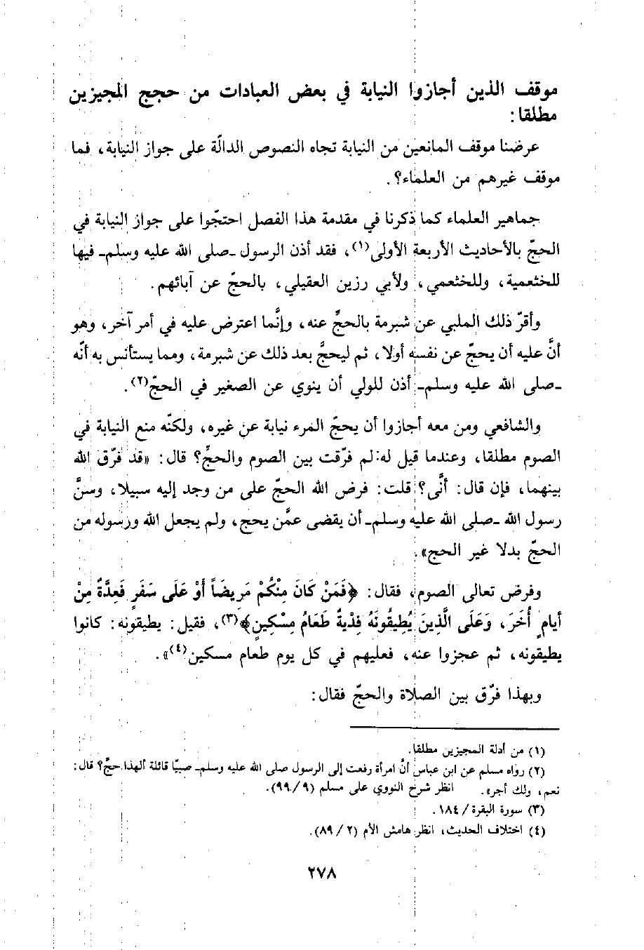 موقف الدين أجازوا النيابة في بعض العبادات من حجج المجيزين مطلقا: