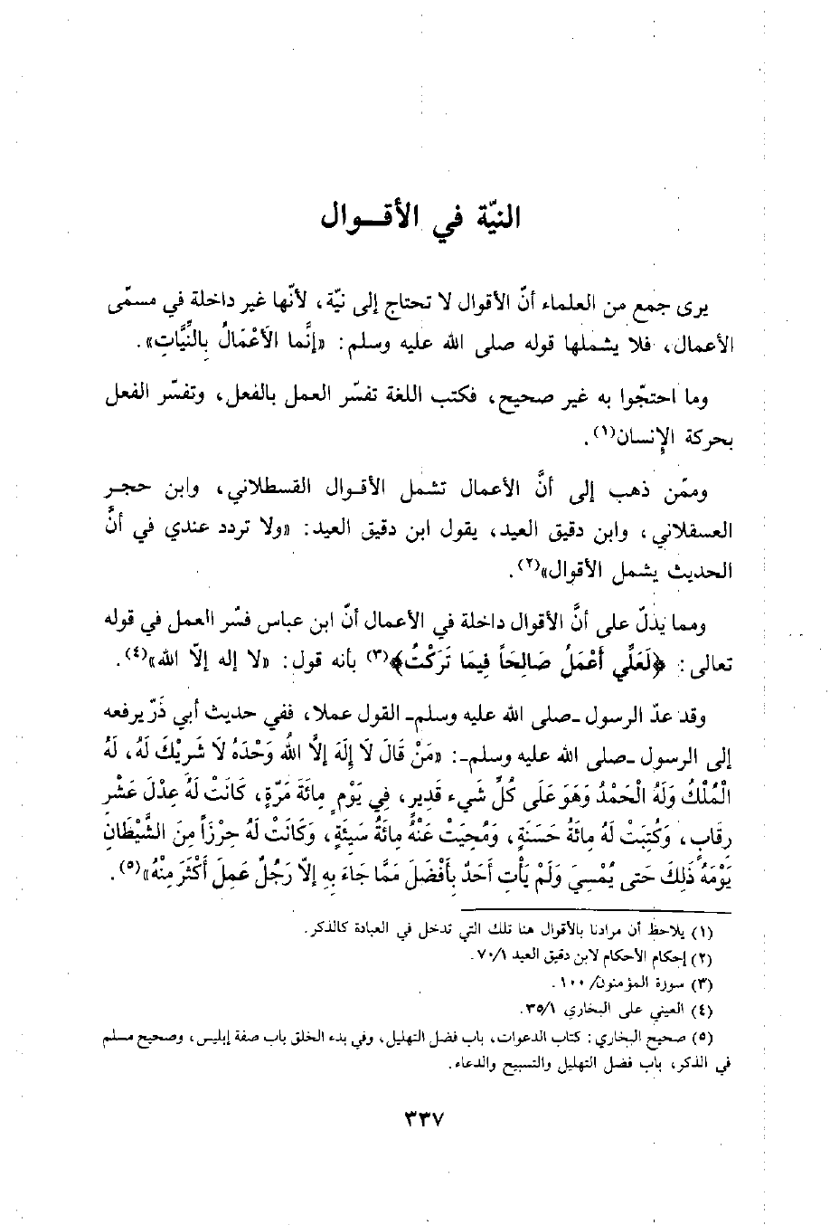(¬1) يلاحظ أن مرادنا، بالأقوال هنا تلك التي تدخل في العبادة كالذكر.