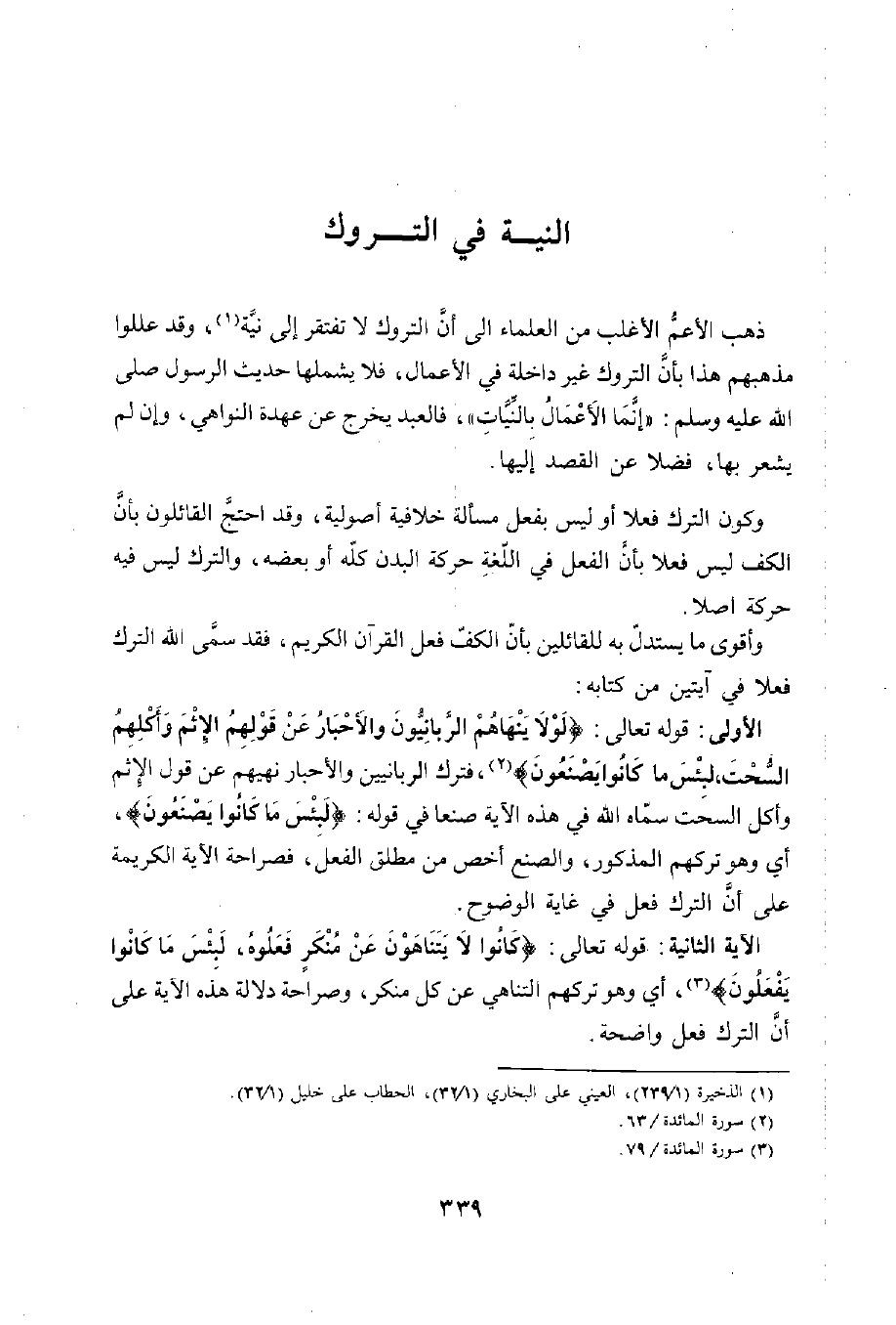 (¬1) الذخيرة (1/ 239)، العيني على البخاري (1/ 32)، الحطاب على خليل (1/ 32).