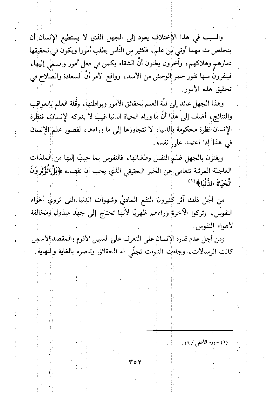 من أجْل ذلك آثر كثيرون النفع الماديَّ وشهوات الدنيا التي تروي أهواء النفوس، وتركوا الآخرة وراءهم ظهريّا لأنّها تحتاج إلى جهد مبذول ومخالفة لأهواء النفوس.