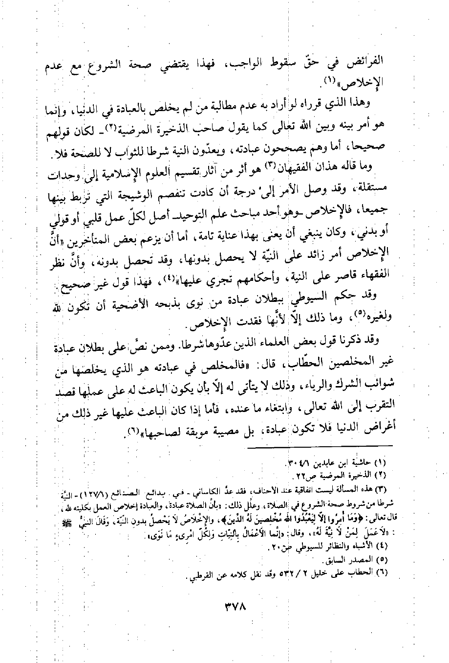 وهذا الذي قرراه لو أراد به عدم مطالبة من لم يخلص بالعبادة في الدنيا، وإنما هو أمر بينه وبين الله تعالى كما يقول صاحب الذخيرة المرضية (¬2) - لكان قولهم صحيحا، أما وهم يصححون عبادته، ويعدّون النية شرطا للثواب لا للصحة فلا.