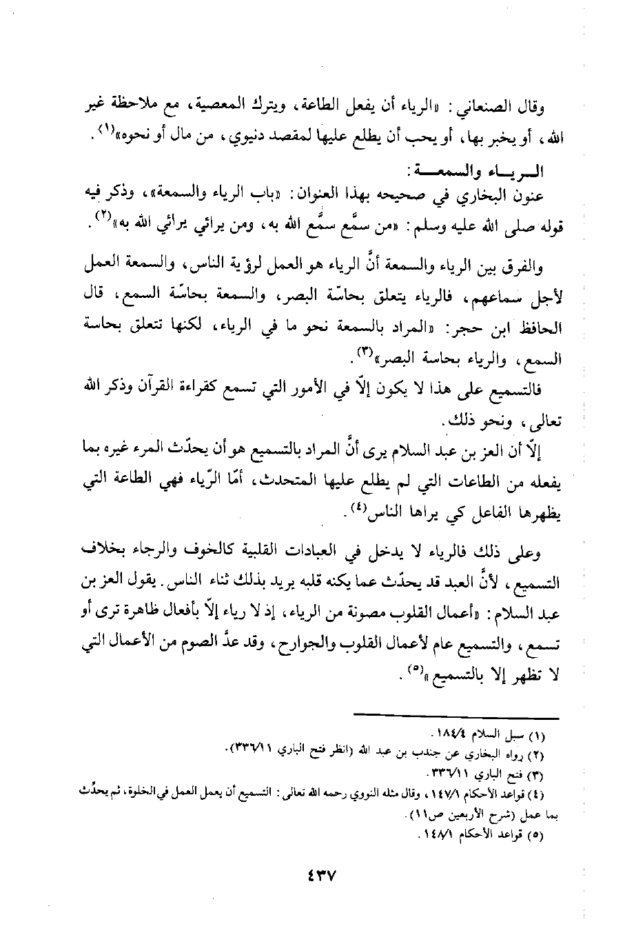 (¬4) قواعد الأحكام 1/ 147، وقال مثله النووي رحمه لله تعالى: التسميع أن يعمل العمل في الخلوة، ثم يحدث بما عمل (شرح الأربعين ص 11).