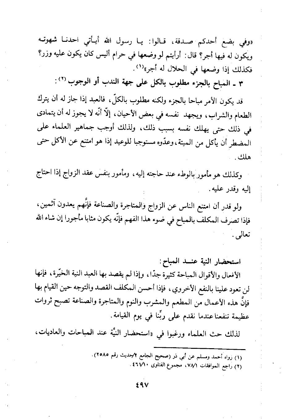 استحضار النية عند المباح: