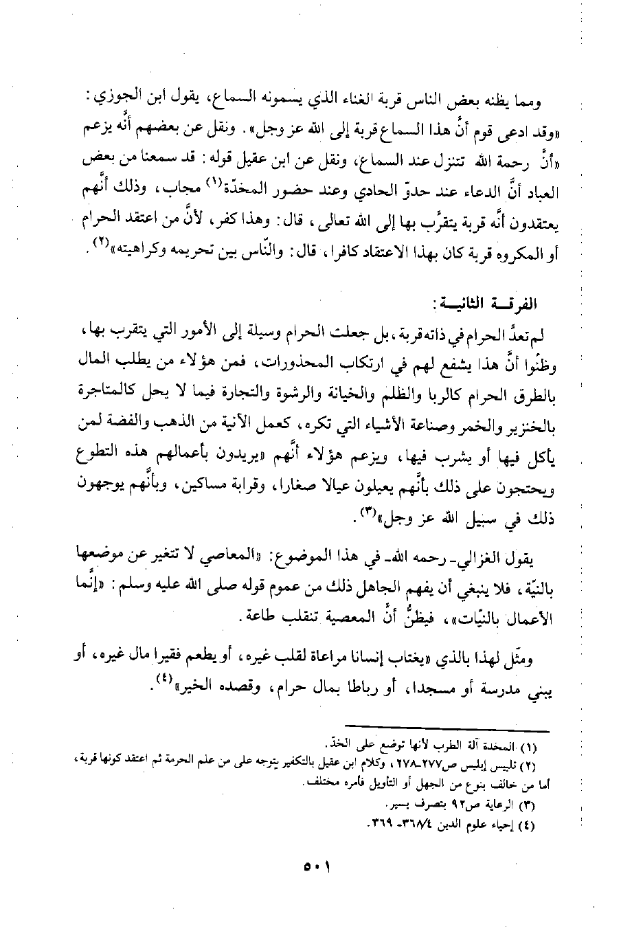 (¬2) تلبيس إبليس ص 277 - 278، وكلام ابن عقيل بالتكفير يتوجه على من علم الحرمة ثم اعتقد كونها قربة، أما من خالف بنوع من الجهل أو التأويل فأمره مختلف.